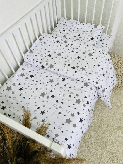 Змінна дитяча постіль, 110 см на 140 см. Принт - Зірки різні на білому