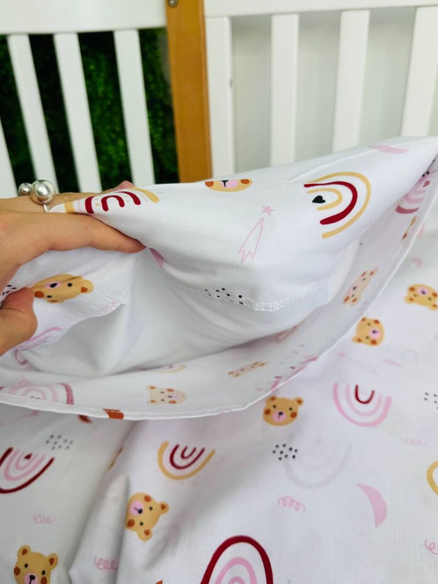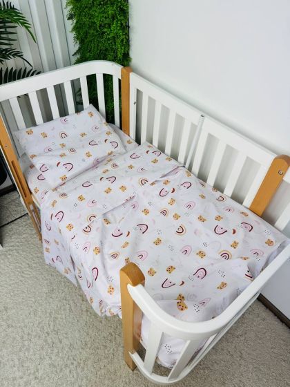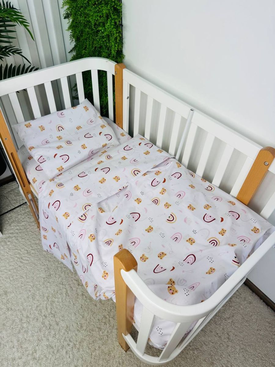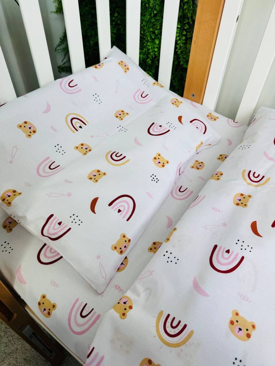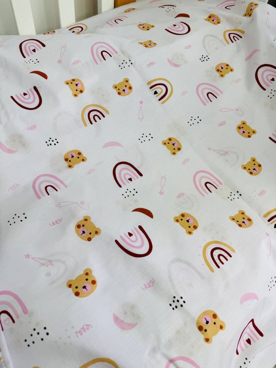 Змінна дитяча постіль, 110 см на 140 см. Принт - Веселки рожеві