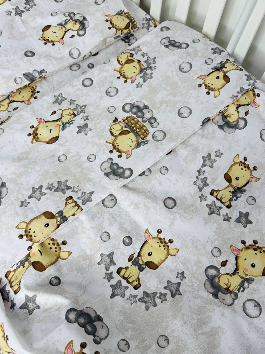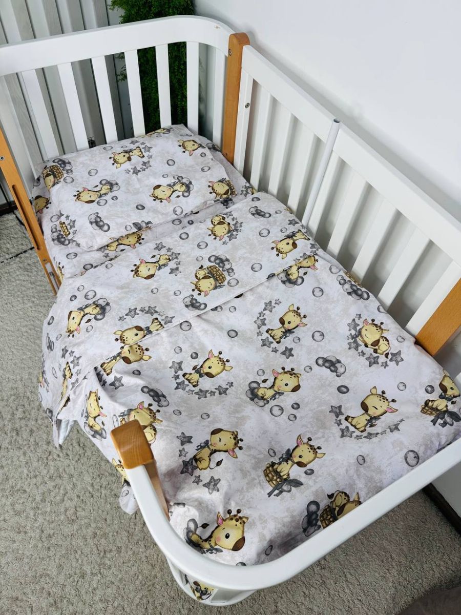Змінна дитяча постіль, 110 см на 140 см. Принт - Жираф сірий