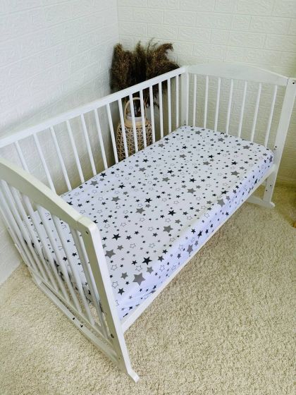Простирадло легко одягається на матрац, щільно прилягає до його поверхні та не збирається складками. Тканина добре тримає форму, не втрачає м’якості після прання та підходить для щоденного використання. Виріб простий у догляді — його можна прати в пральній машині, і він надовго зберігає свій акуратний вигляд. Ідеальний варіант для дитячого ліжечка вдома.