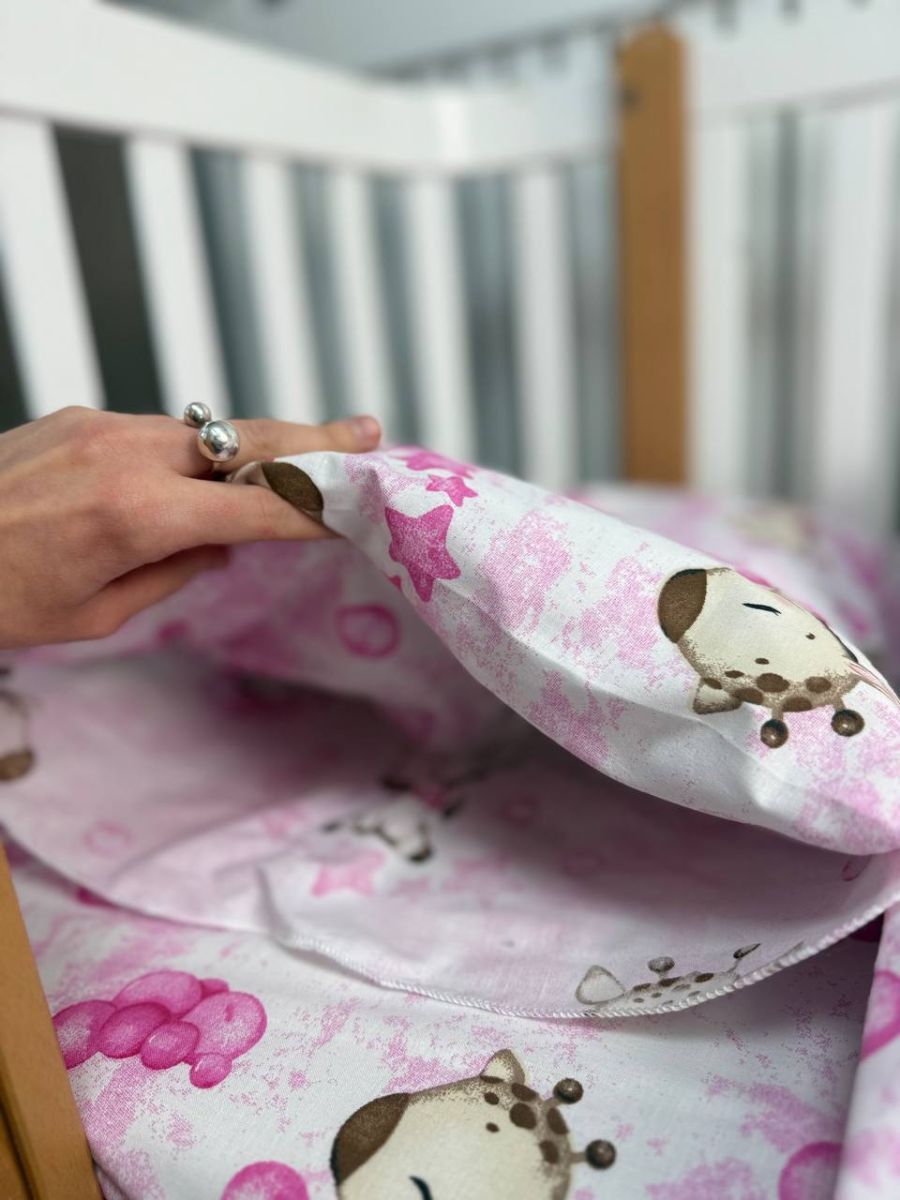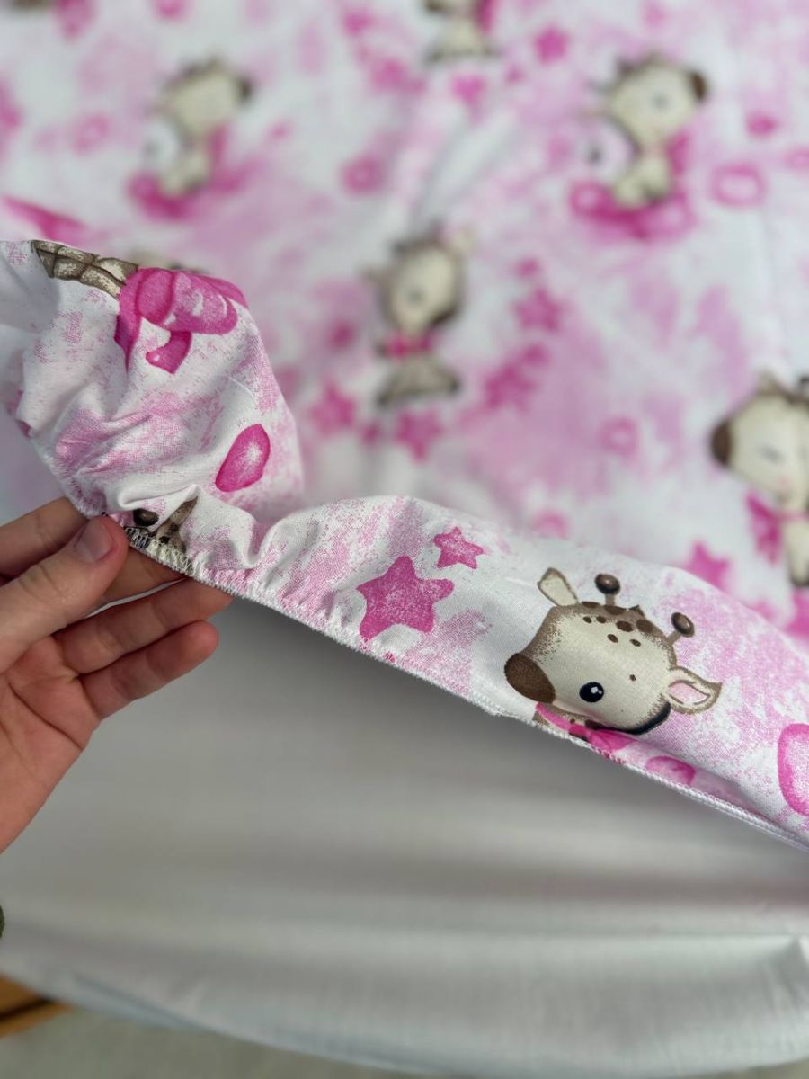 - Простирадло на резинці (120x60 см): Ідеально фіксується на матраці, не сповзає навіть під час активного сну малюка.