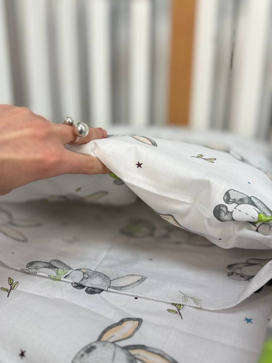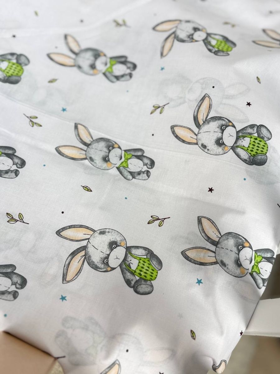 Змінна дитяча постіль, підковдра 110см на 90см. Принт - Зайці в метелику