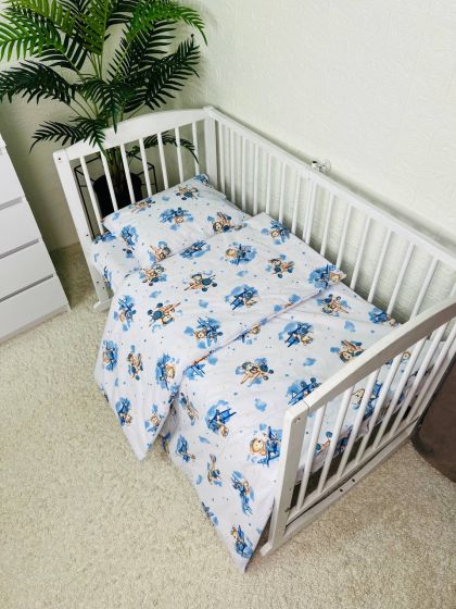Змінна дитяча постіль, 110 см на 140 см. Принт - Ведмідь на літаку, блакитний