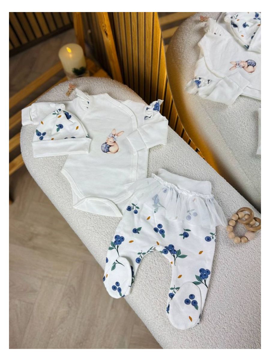 Ніжний і теплий комплект із боді, шапочкою та повзунками, виготовлений із м’якої та приємної на дотик байки. Ідеальний вибір для перших днів життя вашого малюка 💙