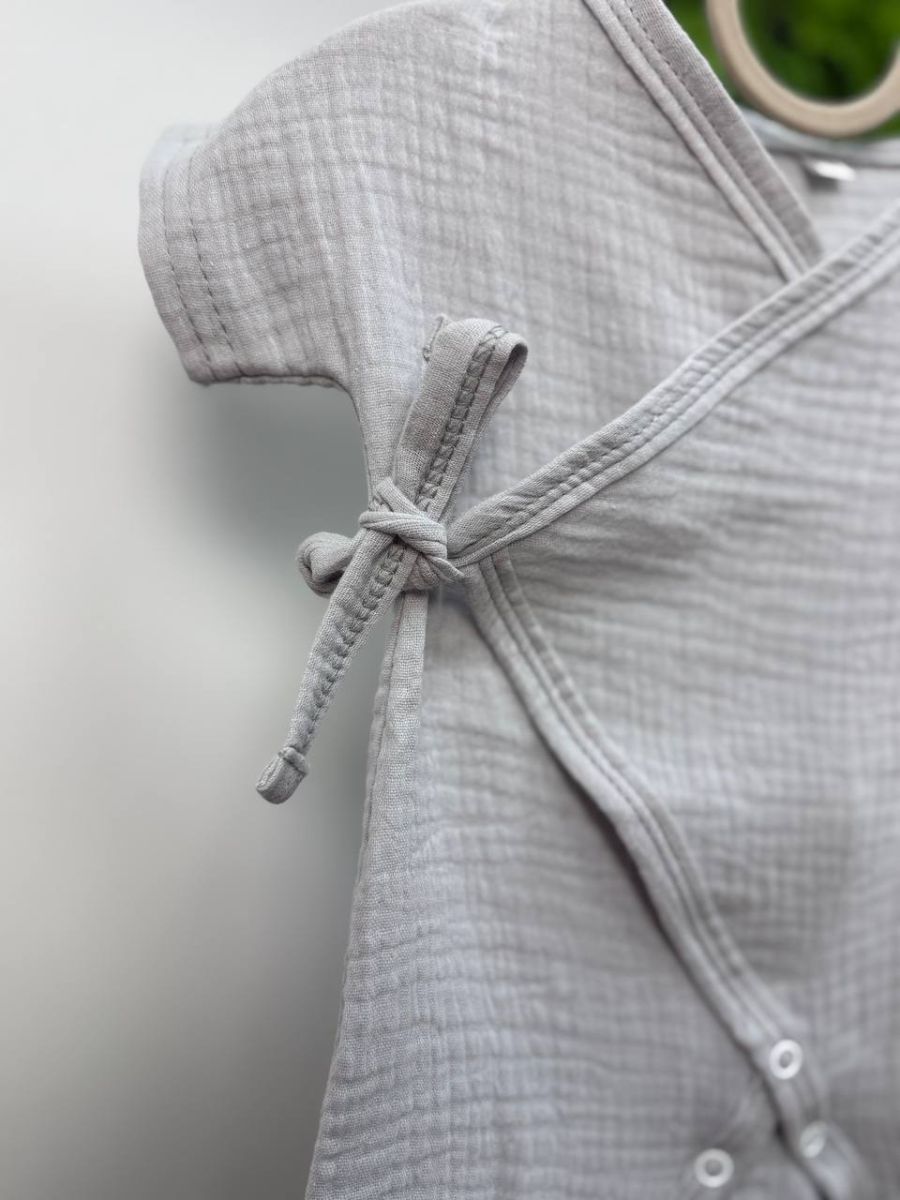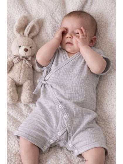 Комфортний та практичний пісочник-кімоно для малюків, виготовлений із чотиришарового натурального мусліну-жатки. Тканина має м’яку, повітряну текстуру, добре пропускає повітря та ідеально підходить для чутливої дитячої шкіри.