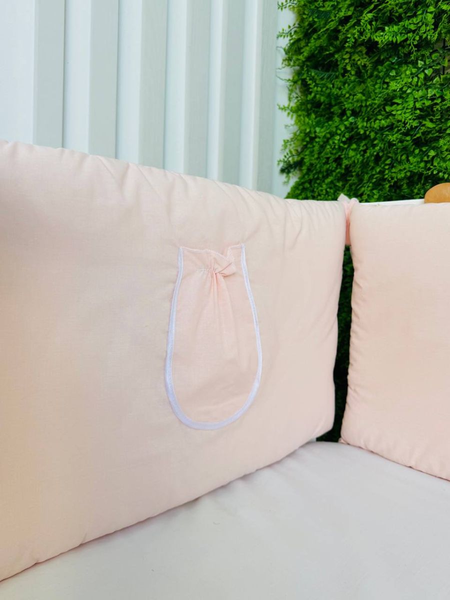 Бортики-суцільні на 4 боки ліжка, на завʼязках. Принт - Персиковий однотон