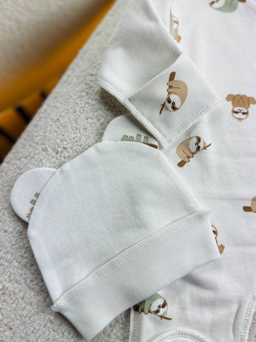Чоловічок з шапочкою "Метелик", байка, 62р. БО. Принт - Лінивці на гілках. Розмір - 62