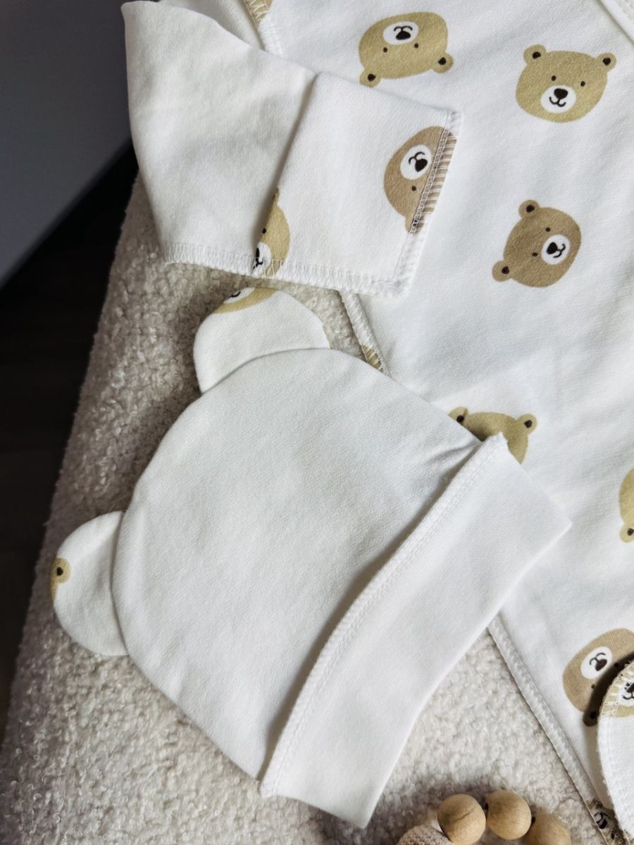 Затишний та стильний чоловічок з шапочкою – чудовий вибір для вашого малюка. Виготовлений із м’якої та теплої байки, яка приємно огортає дитину, зберігаючи тепло та комфорт. Завдяки універсальному дизайну, ця модель підійде як для щоденного носіння, так і для особливих моментів, таких як виписка з пологового будинку або сімейні свята.