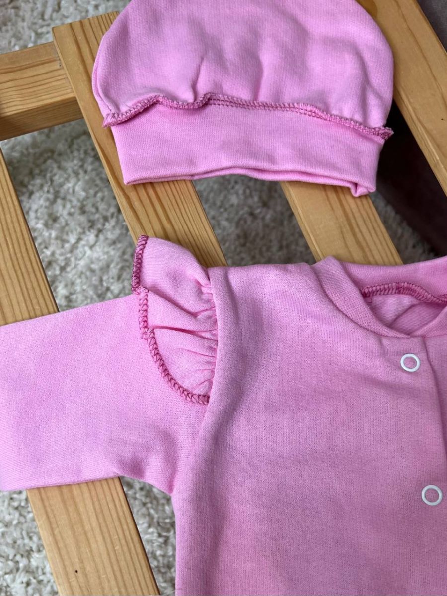 Затишний та стильний чоловічок з шапочкою – чудовий вибір для вашого малюка. Виготовлений із м’якої та теплої байки, яка приємно огортає дитину, зберігаючи тепло та комфорт. Завдяки універсальному дизайну, ця модель підійде як для щоденного носіння, так і для особливих моментів, таких як виписка з пологового будинку або сімейні свята.