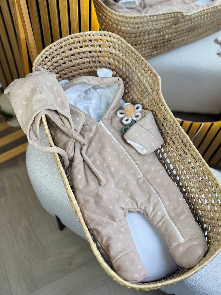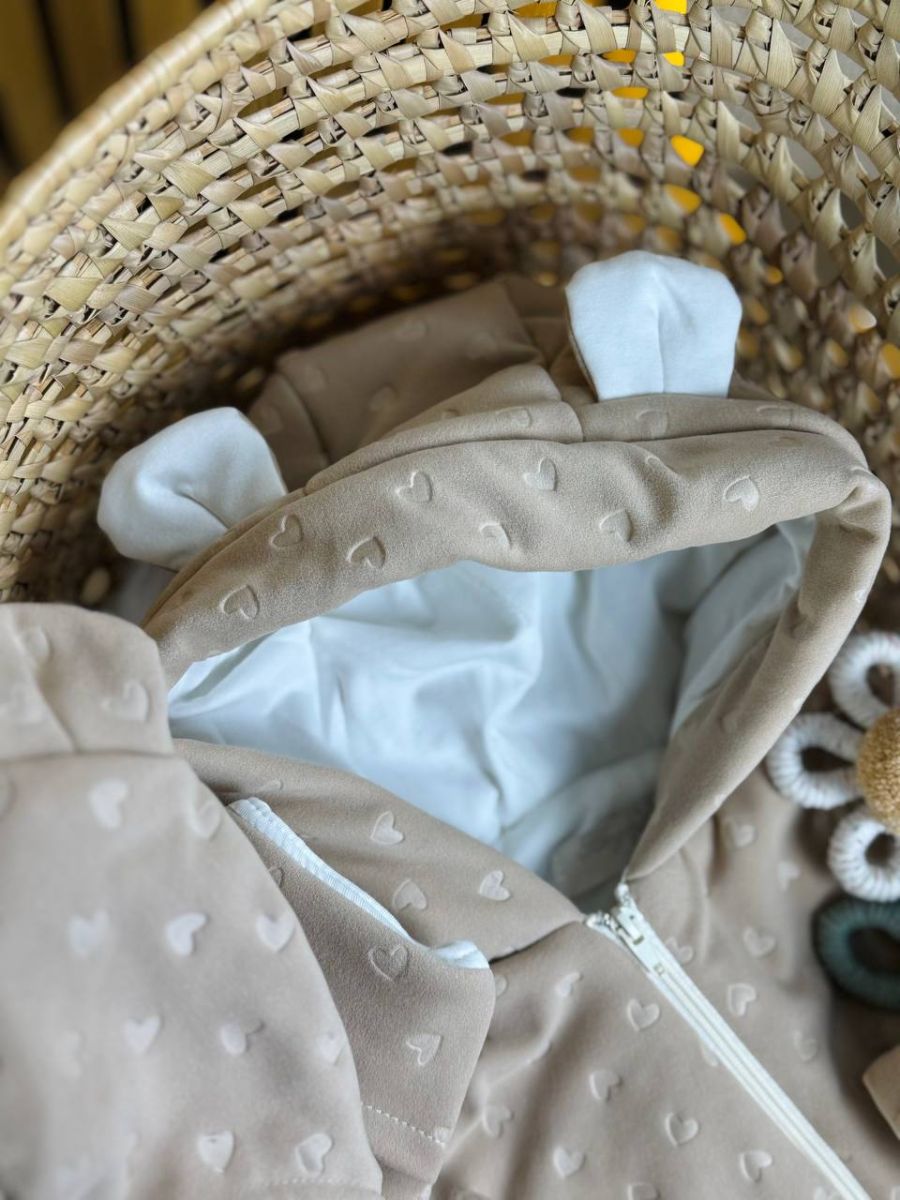 М’який демісезонний комбінезон із капюшоном та милими вушками, виготовлений із ніжного велюру. У комплекті йде шапочка у тому ж стилі.