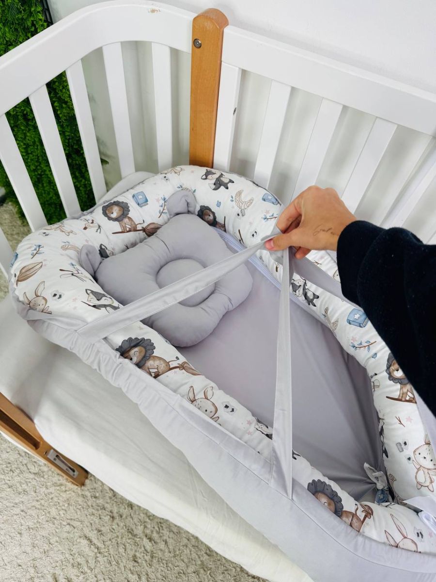 Створіть комфорт та безпеку для вашого малюка з універсальним коконом-позиціонером. Цей аксесуар стане незамінним помічником для новонароджених, забезпечуючи комфортний сон, правильну позицію та легке перенесення.
