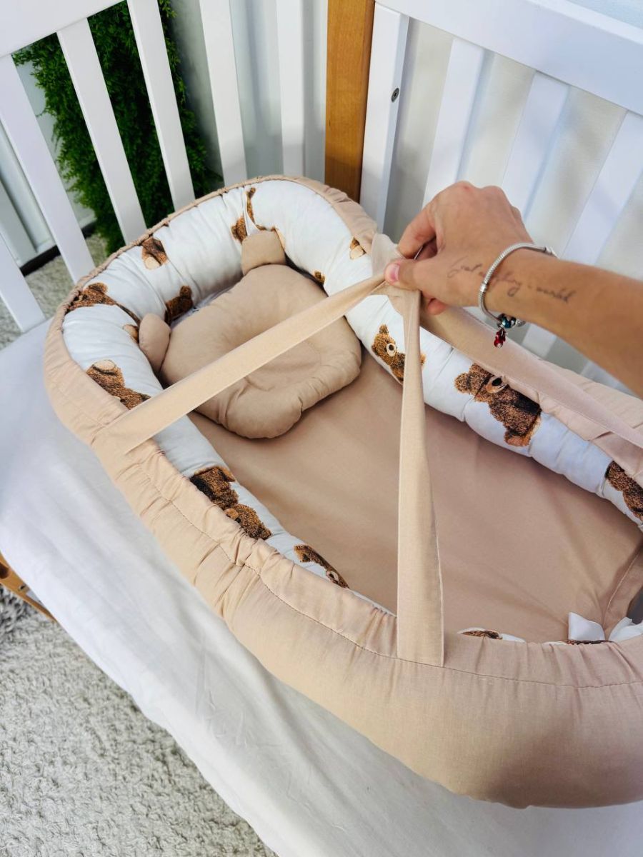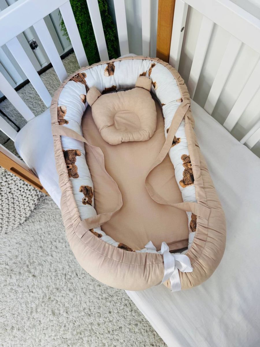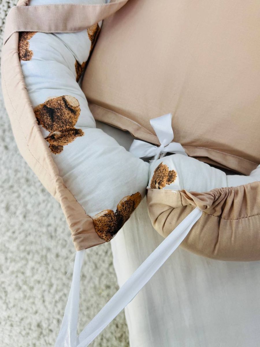 Кокон-гніздечко з ручками. Принт - Ведмідь Тедді, бежевий однотон