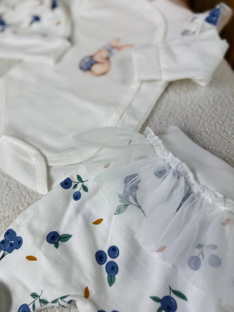 Комплект 3ка з боді на байці "Smile". Колір - Зайченя з лохиною. Розмір - 62