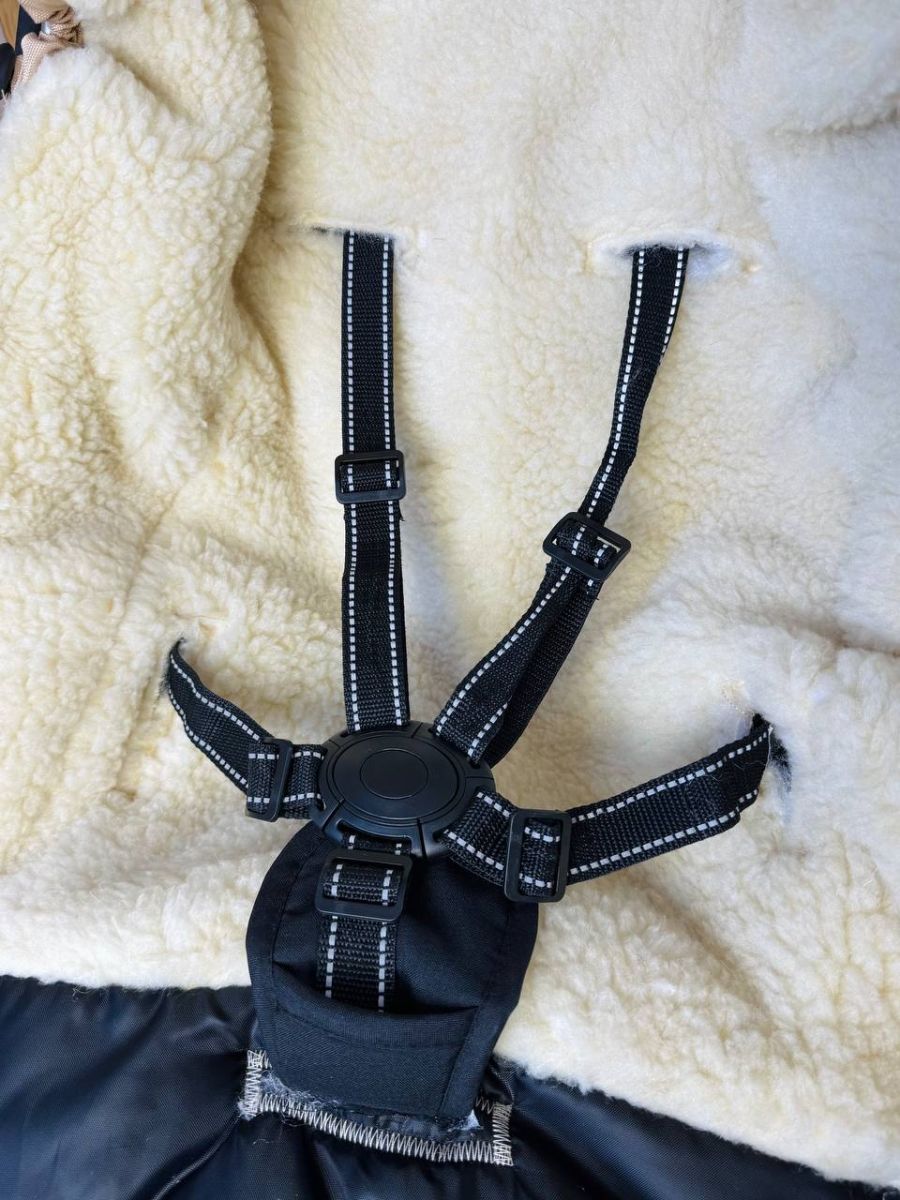 Має зручні намітки під 5-точкові паски безпеки та під бампер-ручку візка, забезпечуючи максимальну безпеку для малюка.