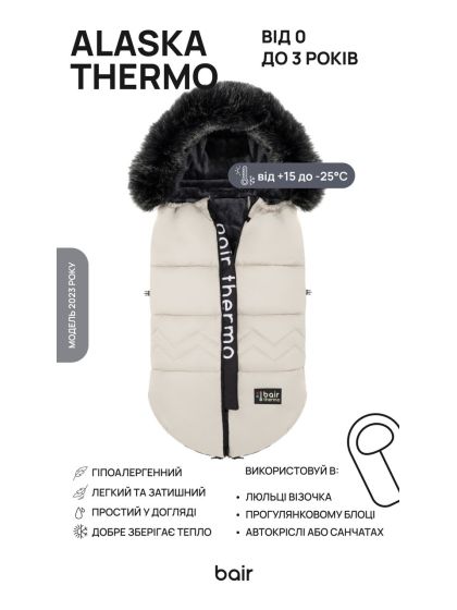 Теплий конверт Bair Alaska Thermo підійде до всіх сучасних колясок та санчат.