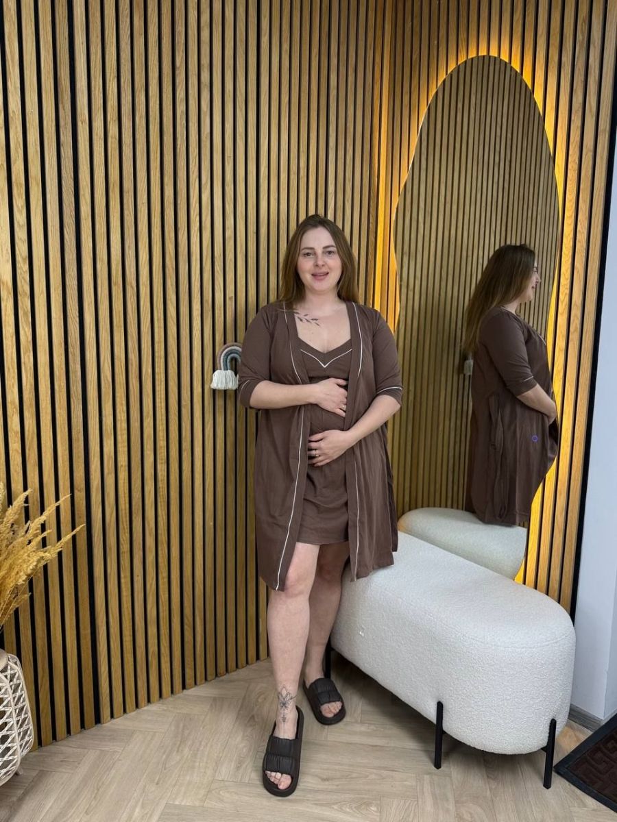Цей комплект стане улюбленим варіантом для майбутніх мам, адже поєднує у собі зручність, ніжність і практичність.