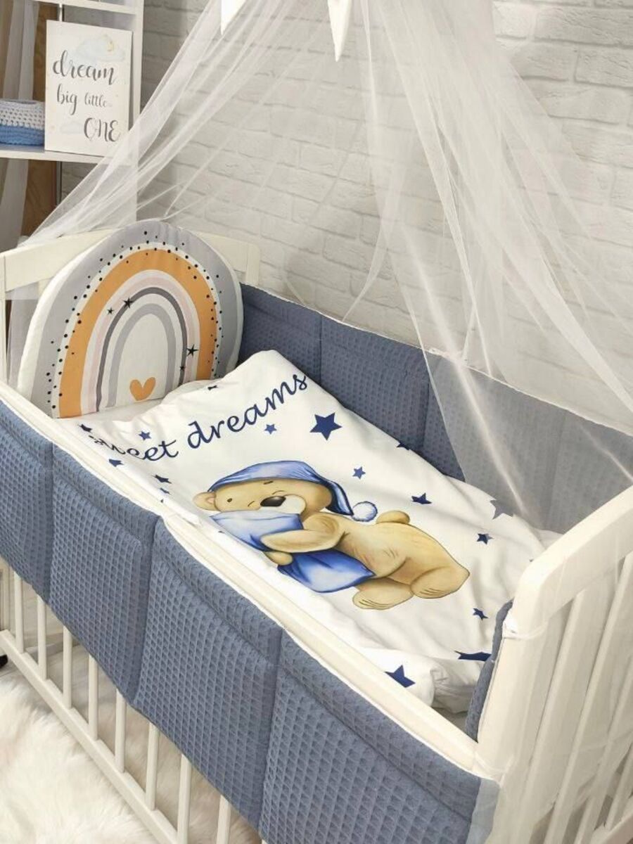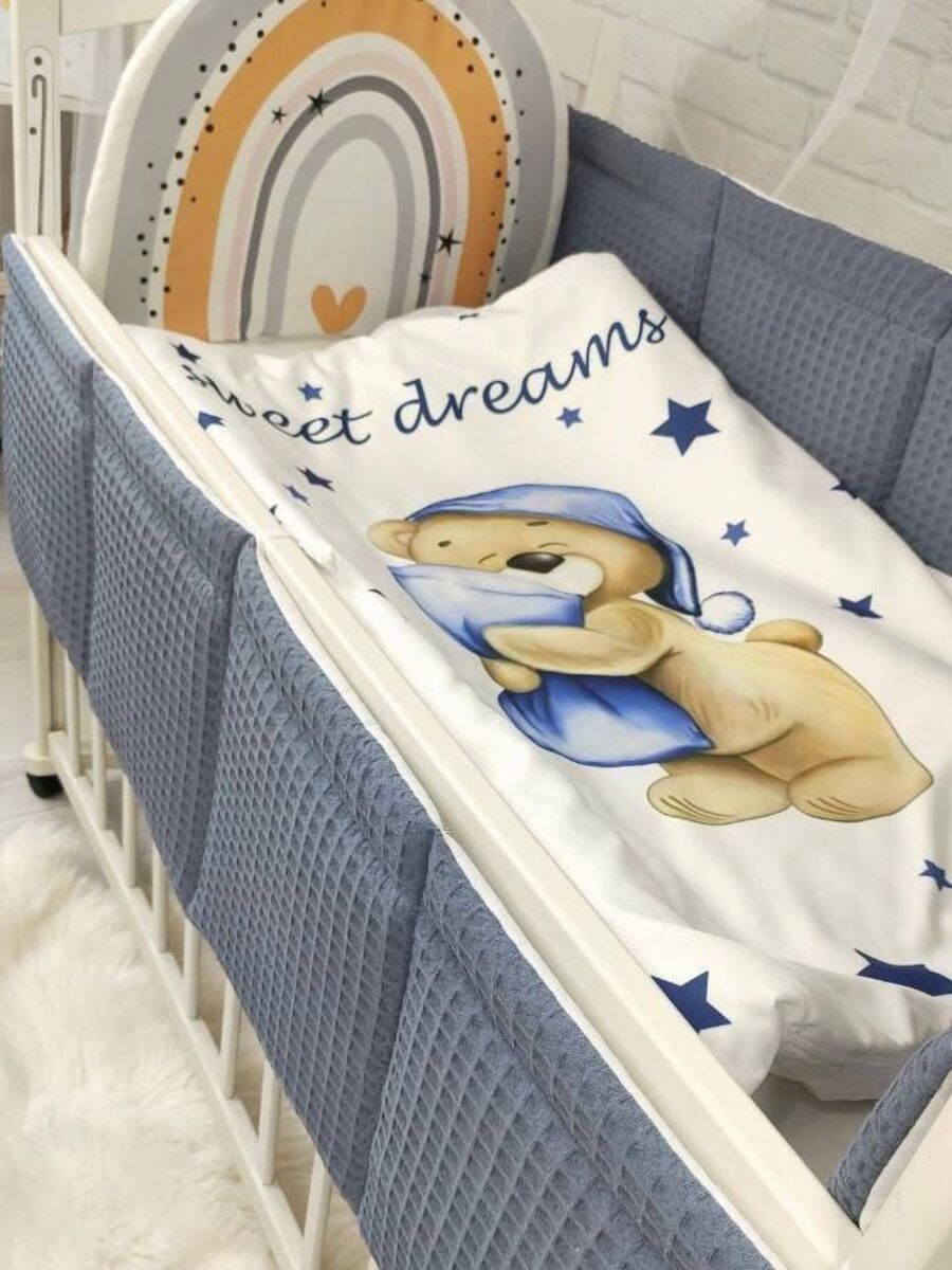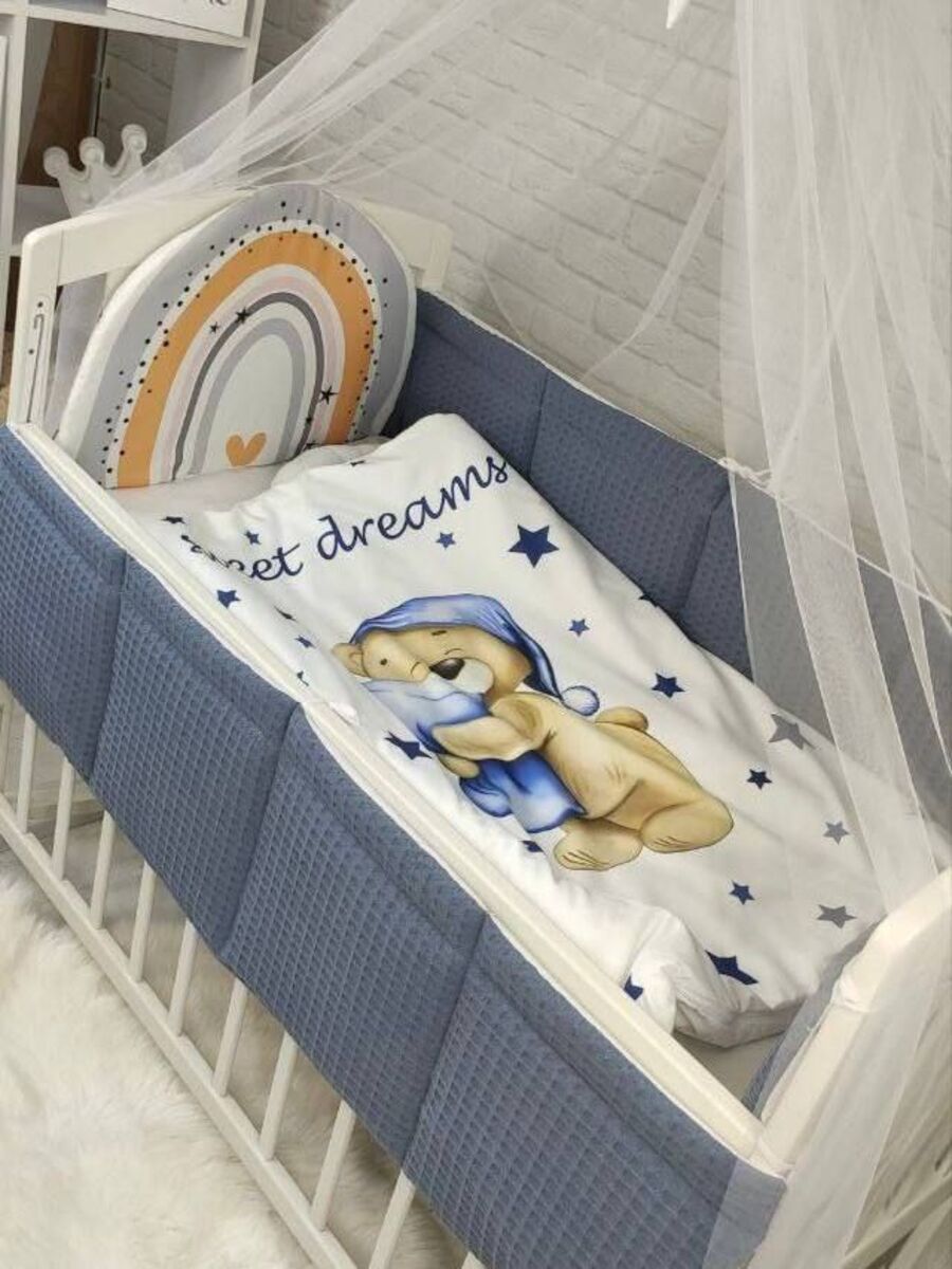 Набір підходить для всіх типів дитячих ліжечок. Яскравий і комфортний набір не залишить байдужим жодного малюка