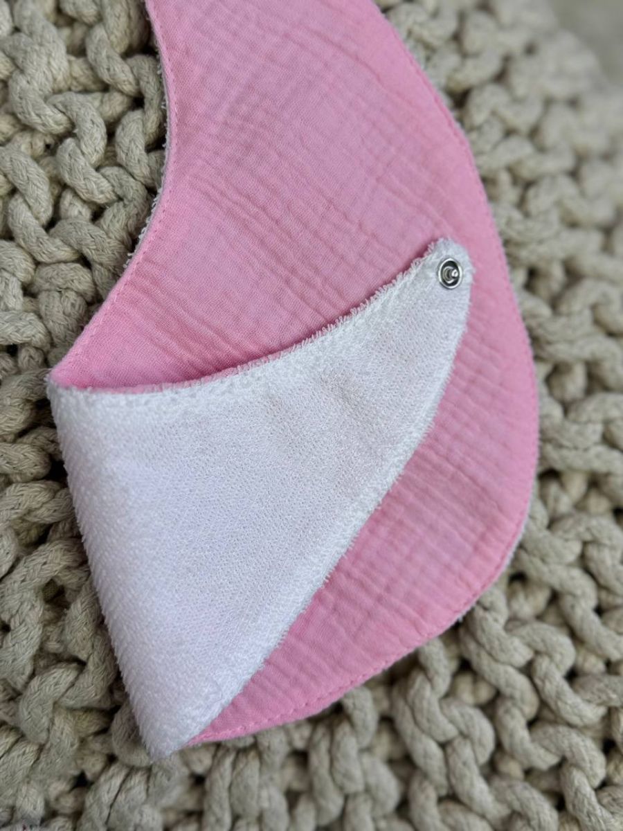 - Регульована застібка: Кнопки дозволяють легко підлаштувати слюнявчик під розмір шиї малюка, забезпечуючи комфорт.