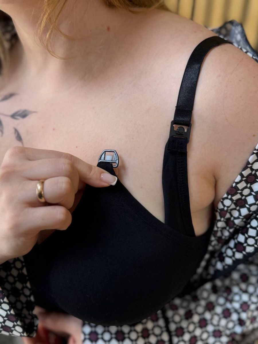 Завдяки зручній застібці-кліпсі чашку можна легко відкрити та закрити однією рукою, що дозволяє швидко та комфортно нагодувати малюка без необхідності знімати бюстгальтер.