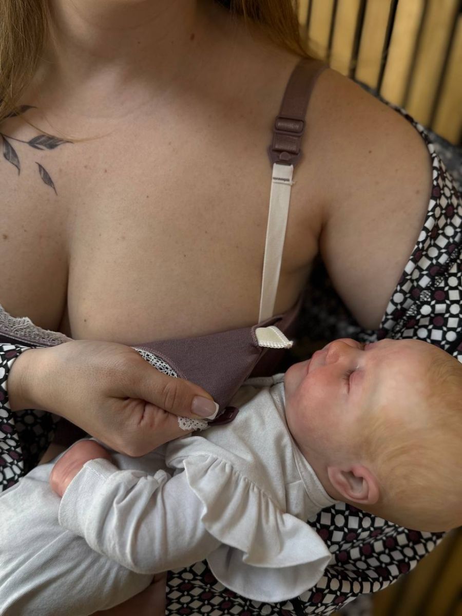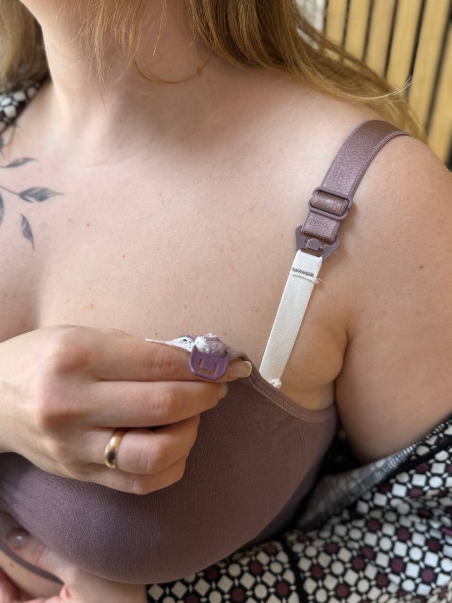 Завдяки зручній застібці-кліпсі чашку можна легко відкрити та закрити однією рукою, що дозволяє швидко та комфортно нагодувати малюка без необхідності знімати бюстгальтер.