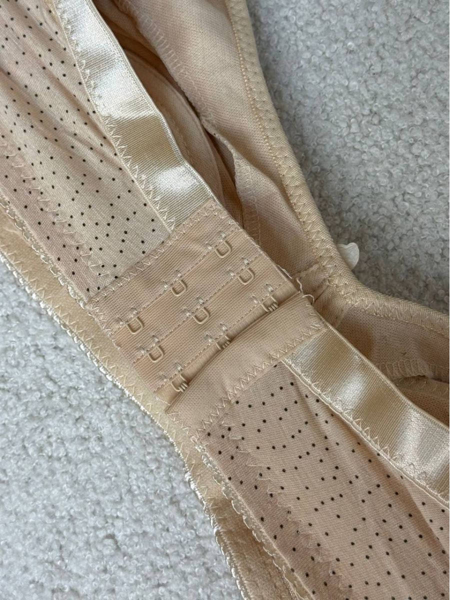 На спинці розташована класична застібка на 3 гачки з 3 рівнями подовження для комфортного регулювання об’єму.