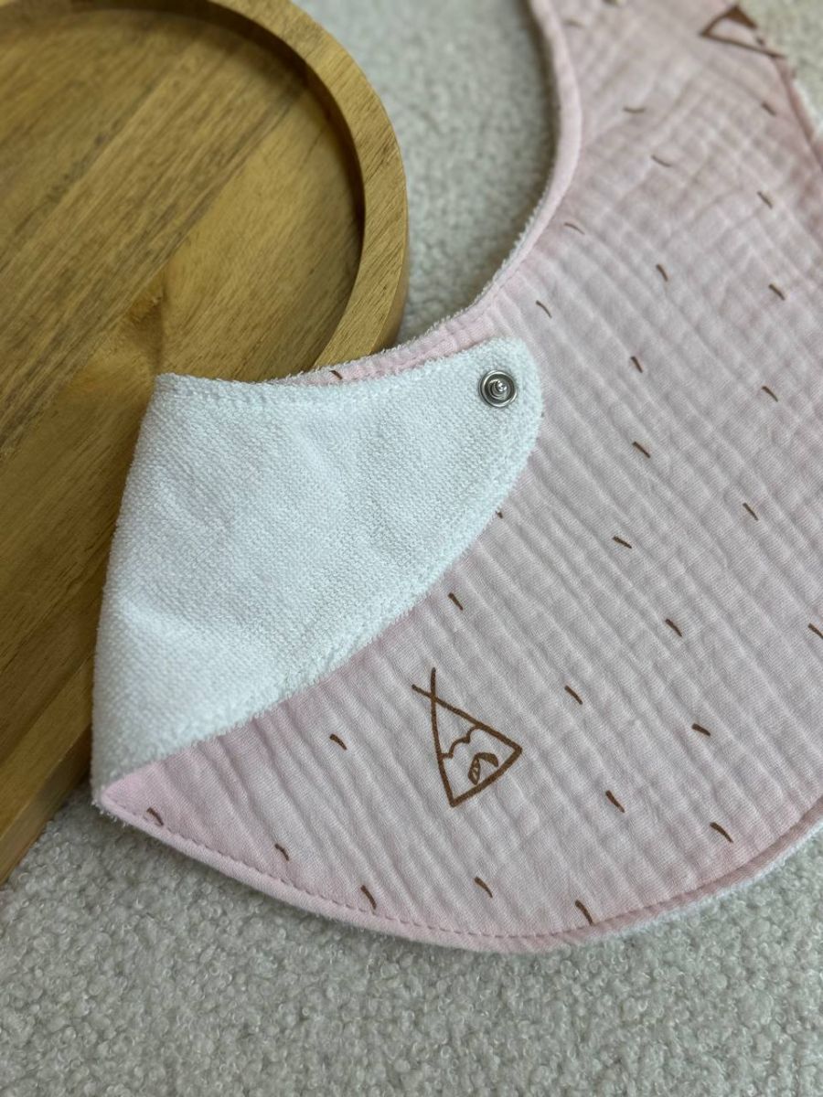 - Регульована застібка: Кнопки дозволяють легко підлаштувати слюнявчик під розмір шиї малюка, забезпечуючи комфорт.
