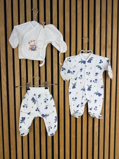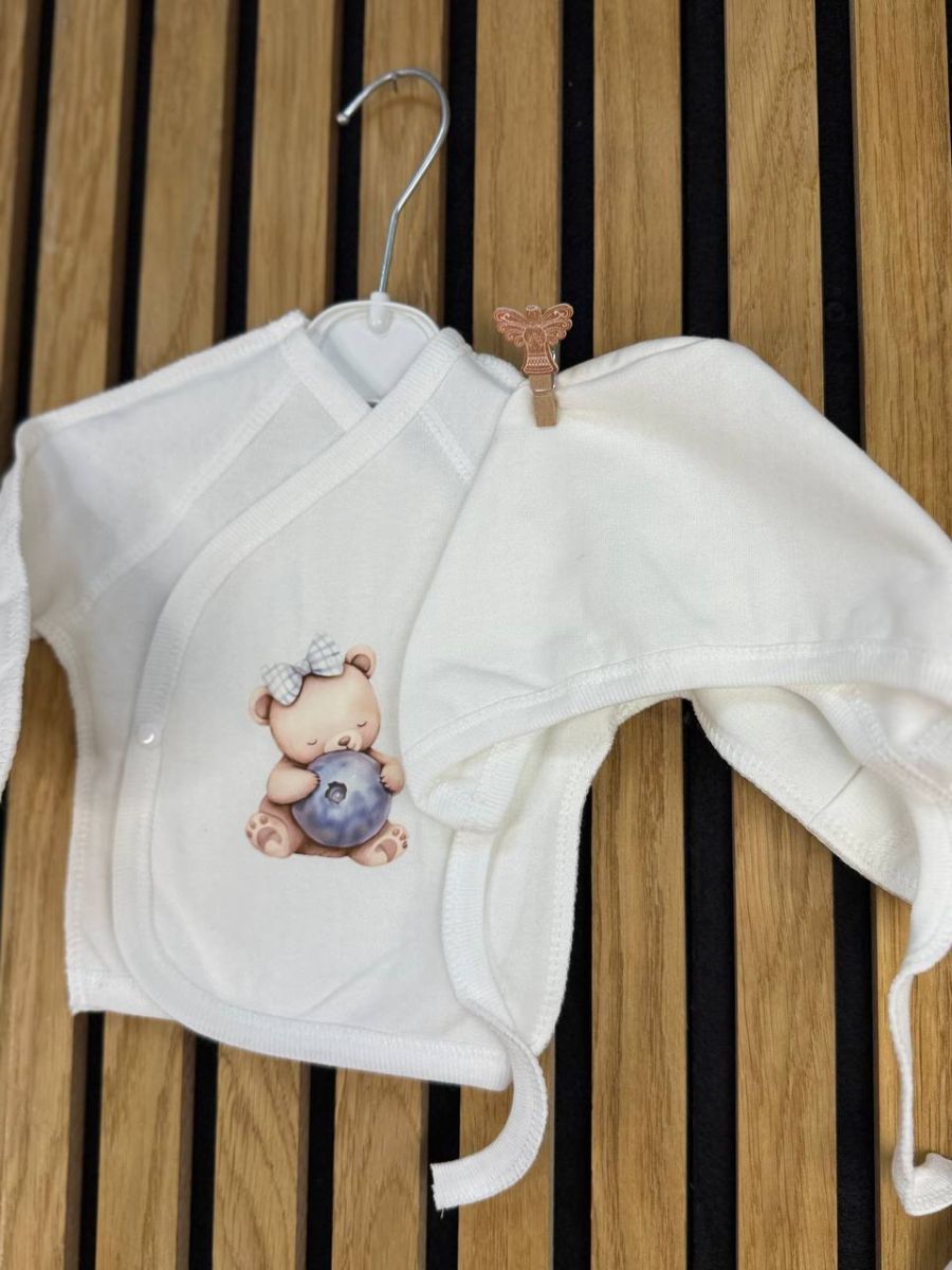 М’який та надзвичайно комфортний комплект на байці, до якого входять, чоловічок, сорочка, штанці та шапочка на зав’язках. Ідеальний вибір для прохолодної пори року — байкова тканина приємна до тіла, добре зберігає тепло та дихає.