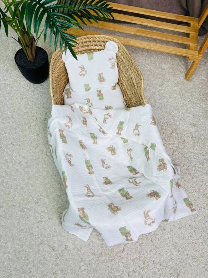 Набір у візочок мусліновий. Колір - Ведмедик в штанцях та зайчик