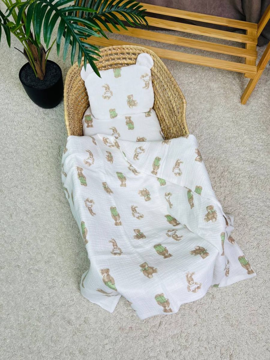 Подаруйте своєму малюкові комфорт із нашими м’якими та практичними мусліновими аксесуарами. Ідеальний вибір для прогулянок, сну та урочистих моментів, таких як виписка.