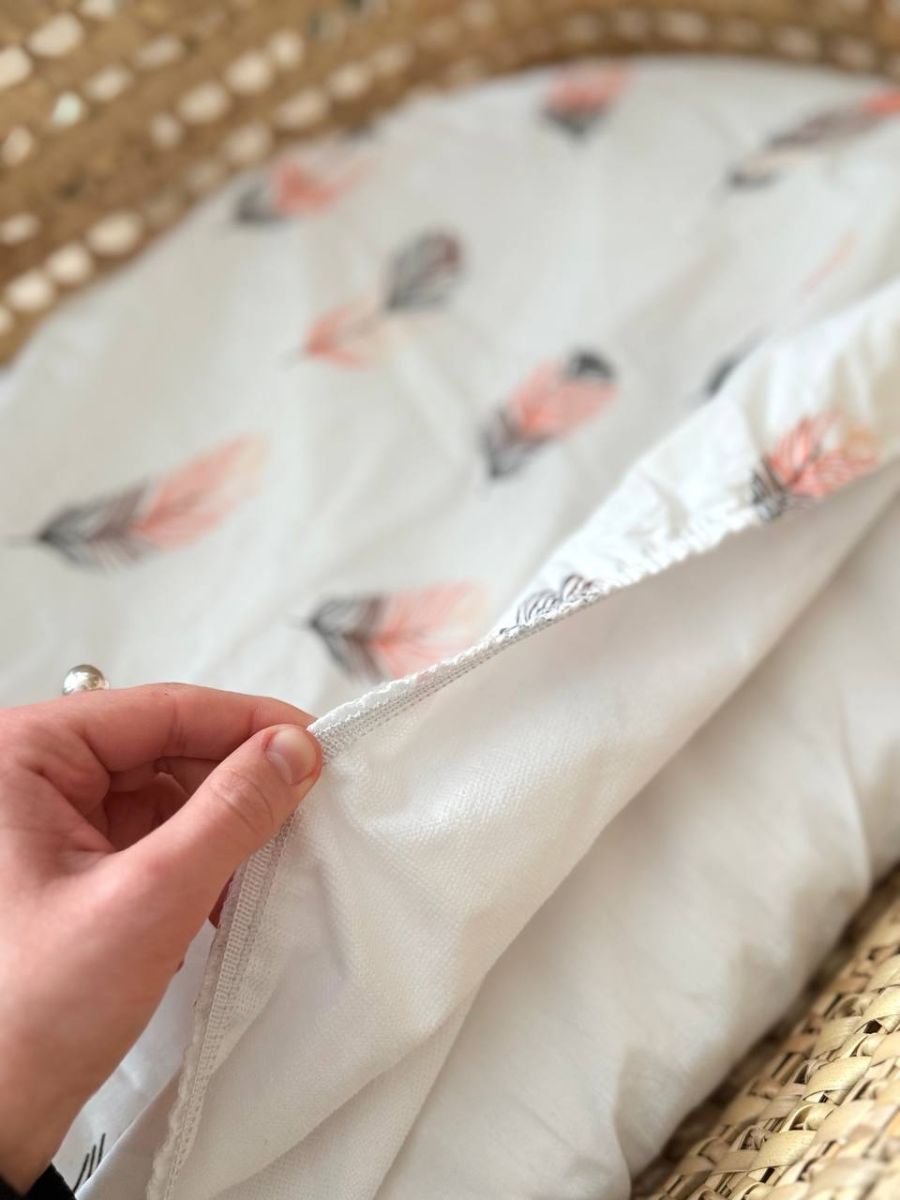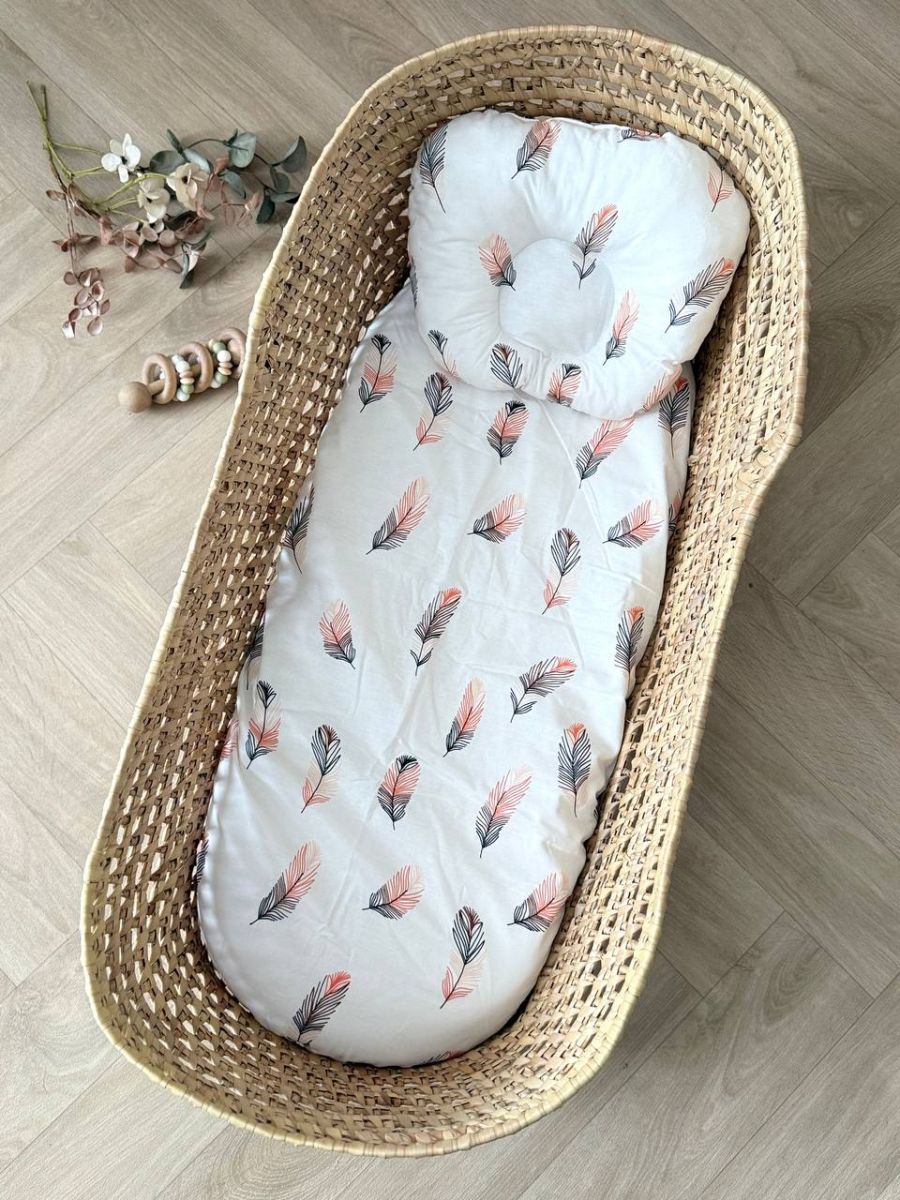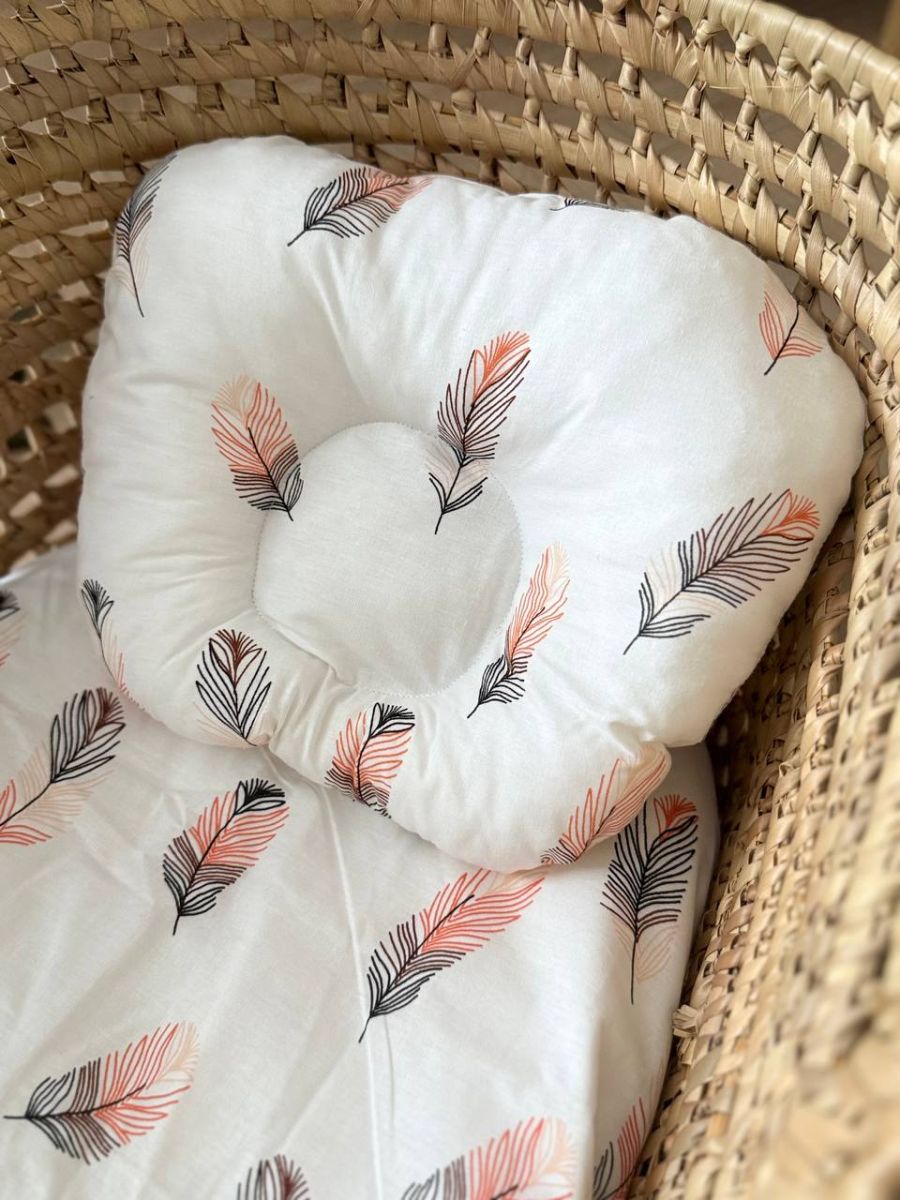 Завдяки універсальному розміру комплект зручно розміщується у більшості дитячих візочків. Легка подушка додає малюкові комфорту та підтримує правильне положенняголови. Виріб добре тримає форму, швидко висихає після прання та підходить для багаторазового використання.