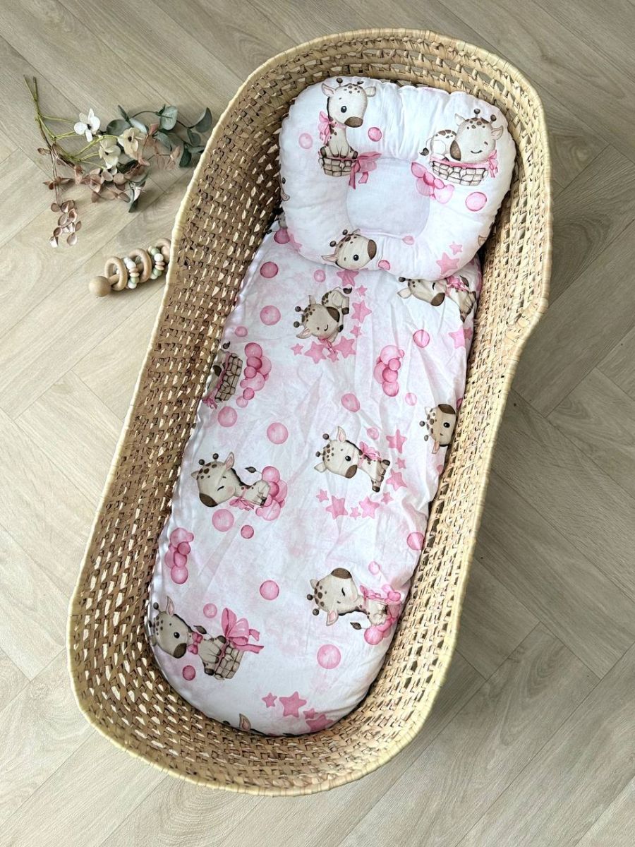 Завдяки універсальному розміру комплект зручно розміщується у більшості дитячих візочків. Легка подушка додає малюкові комфорту та підтримує правильне положенняголови. Виріб добре тримає форму, швидко висихає після прання та підходить для багаторазового використання.