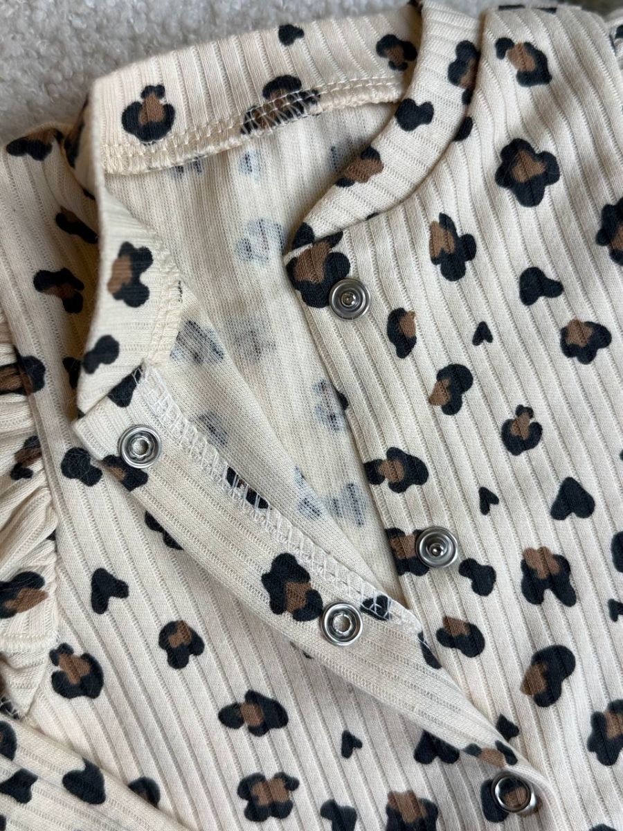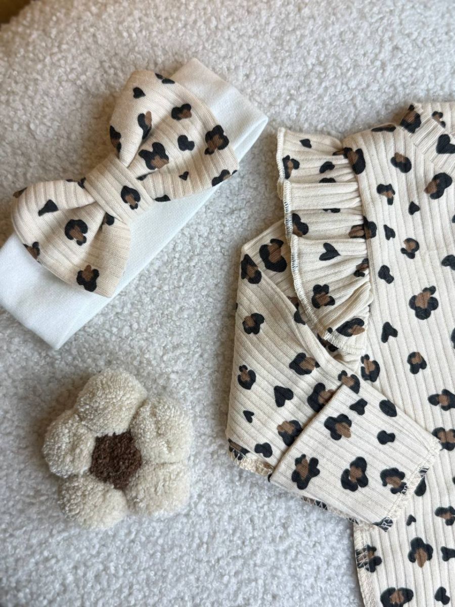 Комплект 3ка з боді та солошкою рубчик, Бо. Принт - Лео на бежевому. Розмір - 56