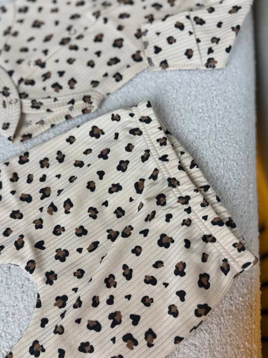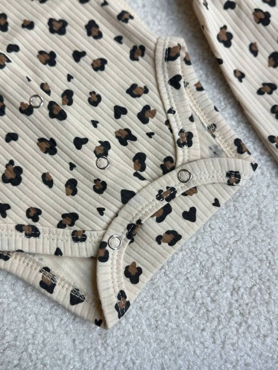 Боді має зручну застібку, що полегшує переодягання та зміну підгузка. Штанці з еластичним поясом комфортно фіксуються на талії, не перетискаючи животик. Комплект чудово підходить як для щоденного носіння вдома, так і для прогулянок.