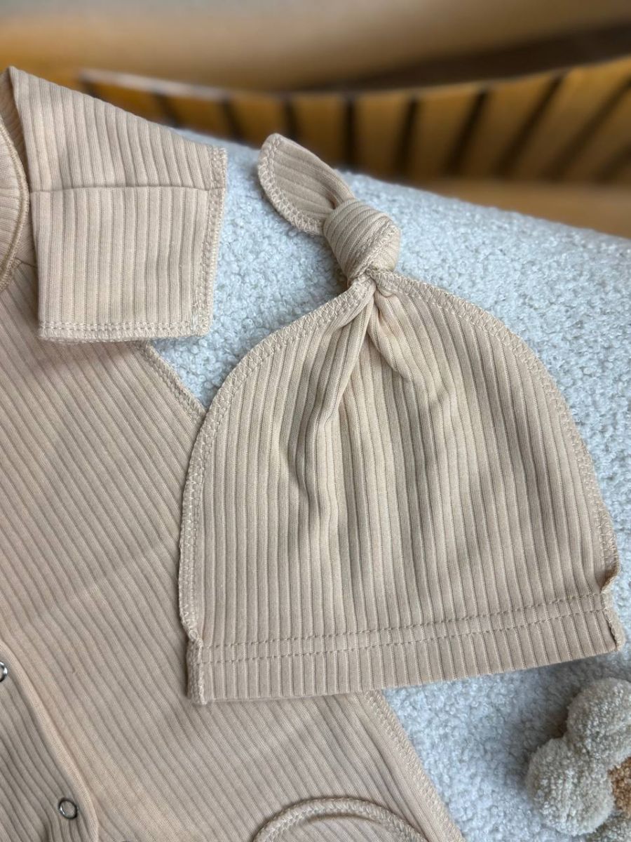 Затишний та стильний чоловічок з шапочкою – чудовий вибір для вашого малюка. Виготовлений із м’якої та теплої байки, яка приємно огортає дитину, зберігаючи тепло та комфорт. Завдяки універсальному дизайну, ця модель підійде як для щоденного носіння, так і для особливих моментів, таких як виписка з пологового будинку або сімейні свята.