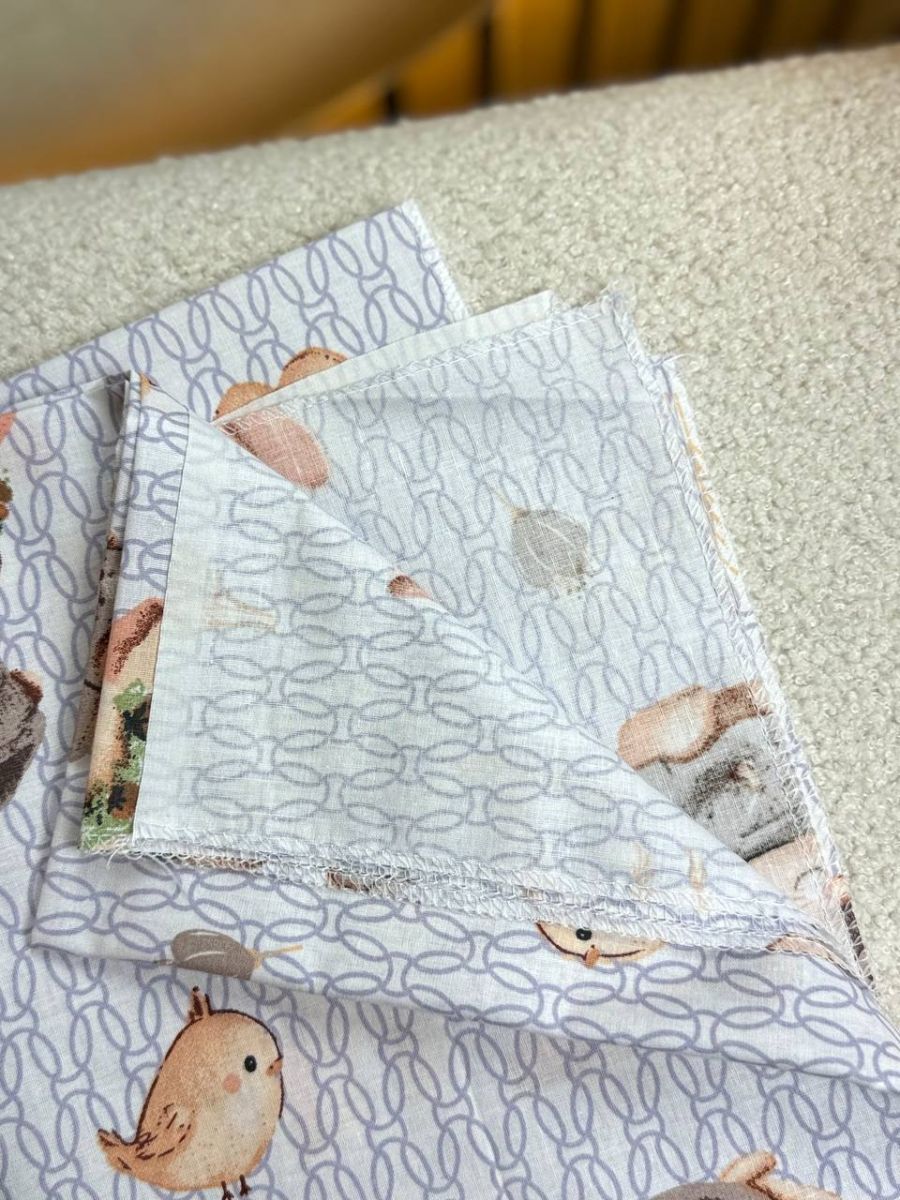 • Прання: Пелюшки та пледи з натуральних тканин (бавовна, муслін, фланель) рекомендується прати при температурі не вище 40°C, ручне прання. Це допоможе зберегти їх м’якість і не порушити структуру волокон.