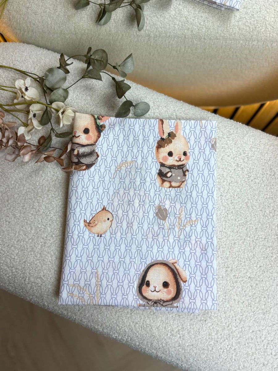 Пелюшки, ситцеві 90×110см. Принт - Зайці бежеві в шапці