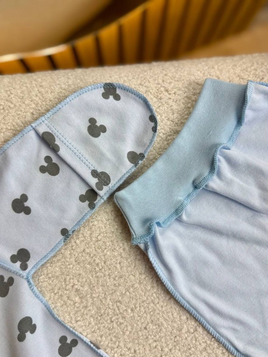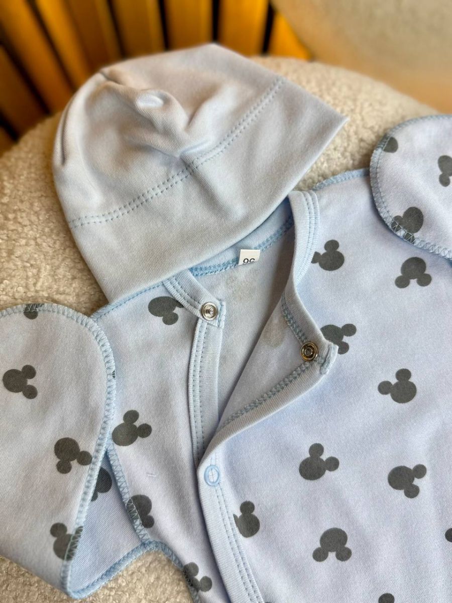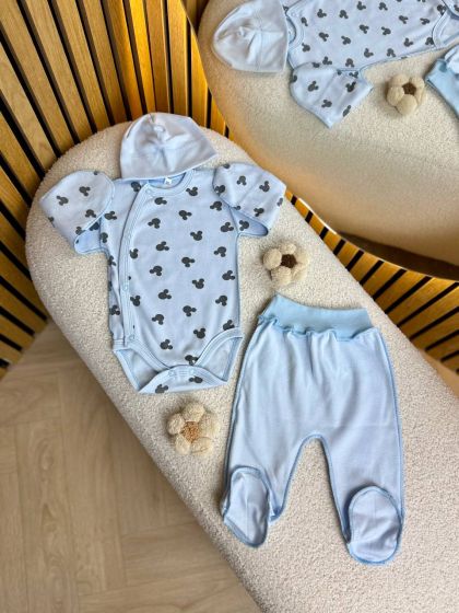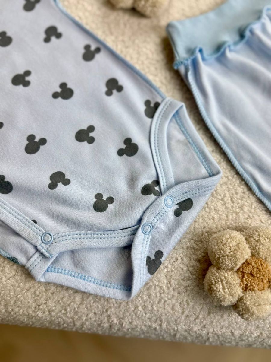 Комплект 3ка з боді інтерлок, 56р. Принт - Міккі на блакитному