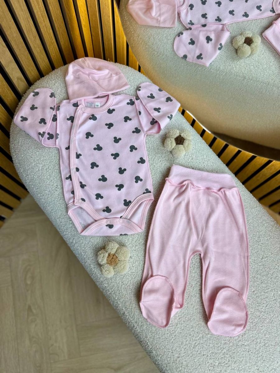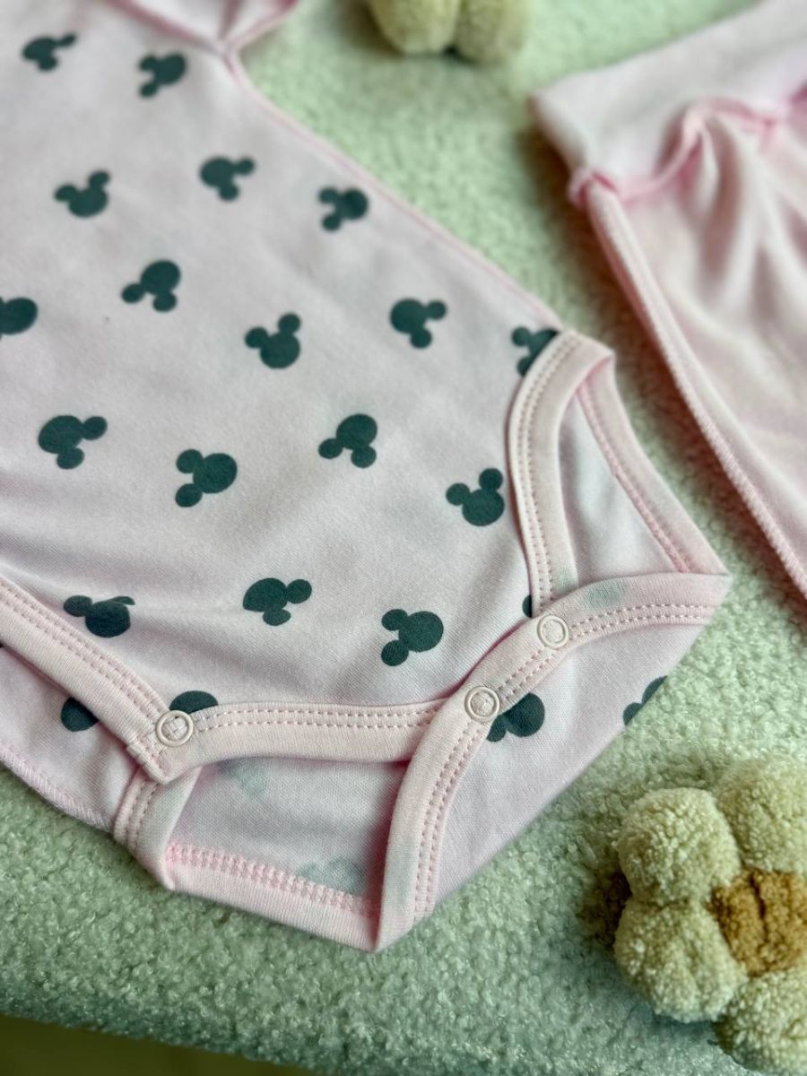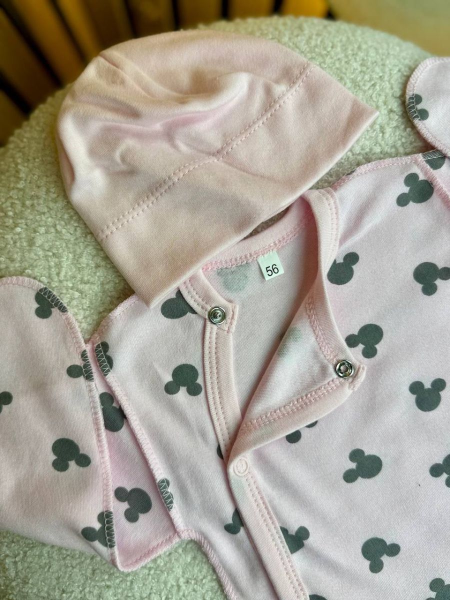 Комплект 3ка з боді інтерлок, 56р. Принт - Міккі на рожевому