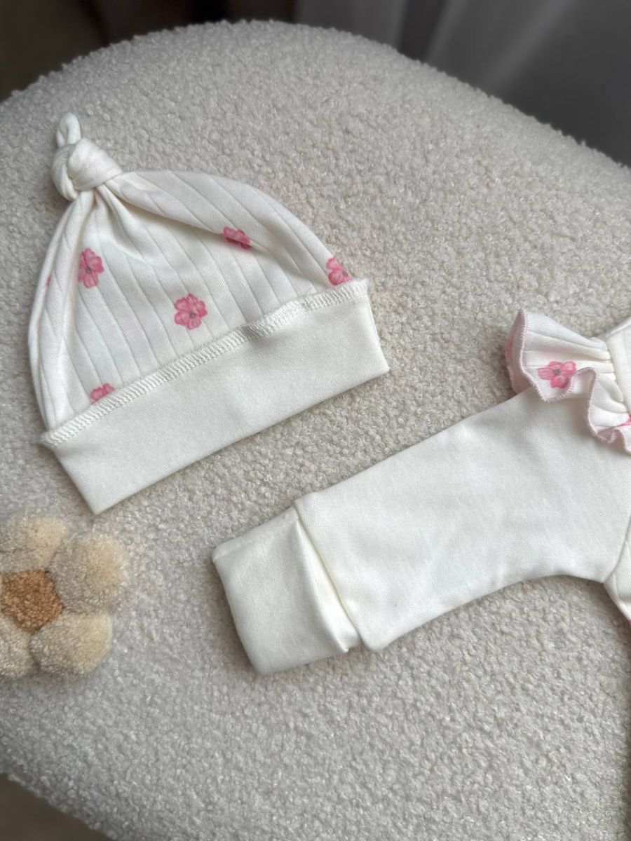 Ніжний дитячий комплект із тканини інтерлок у рубчик — чудовий вибір для перших місяців життя малюка. Матеріал м’який, дихаючий та приємний до тіла, забезпечує комфорт і турботу про ніжну шкіру дитини. Структура в рубчик додає виробам стильного та акуратного вигляду, а щільне плетіння добре зберігає форму після прання.