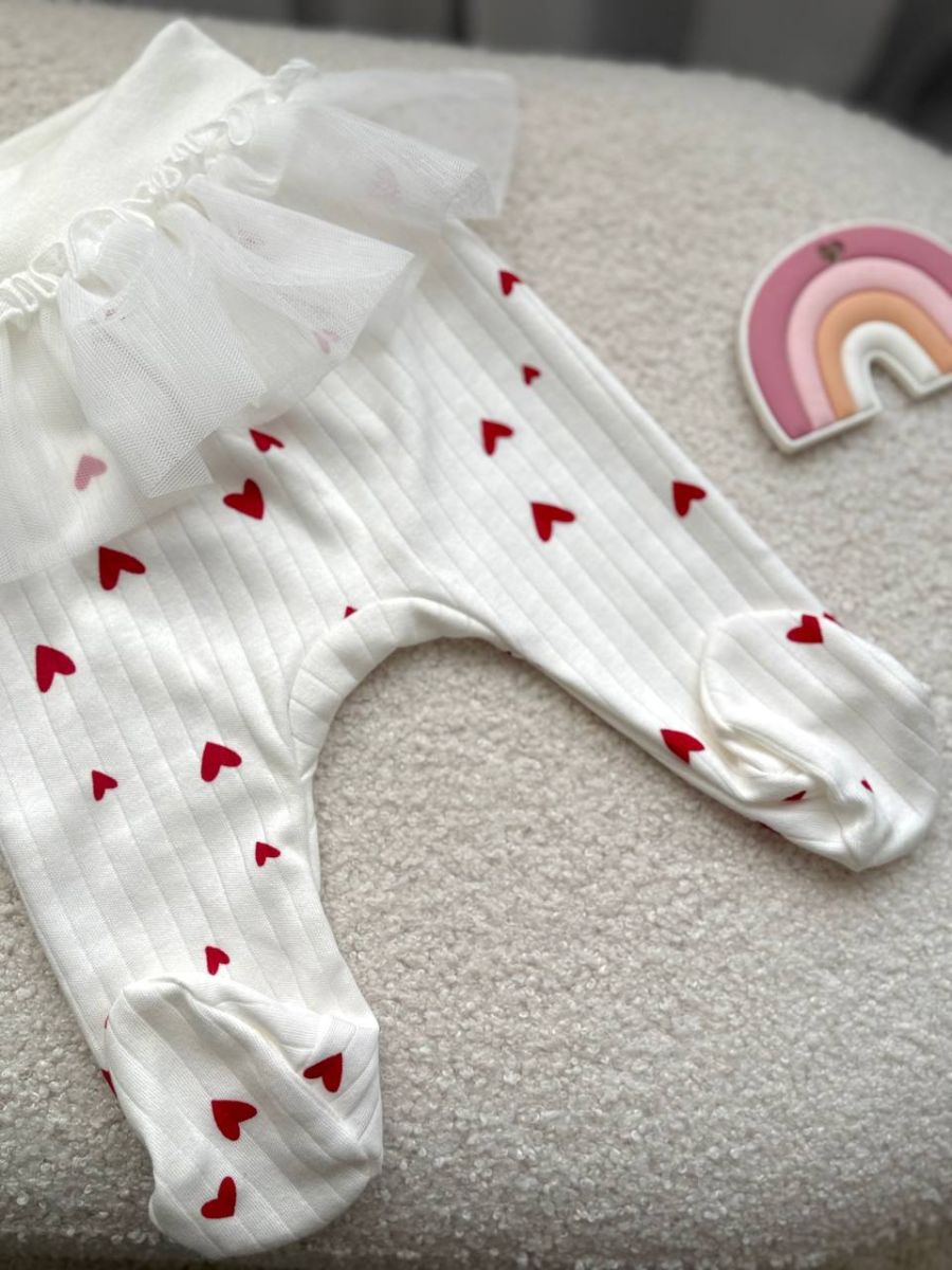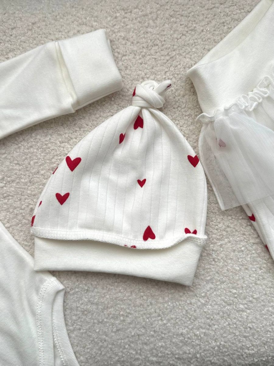 Комплект 3ка з боді та спідницею, інтерлок "Smile". Принт - Зайчик із сердечком. Розмір - 56