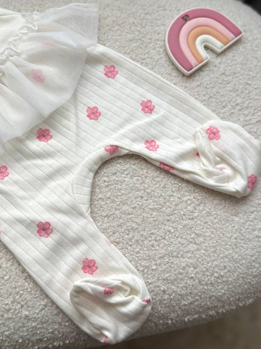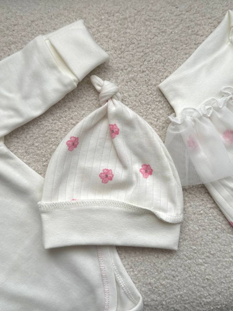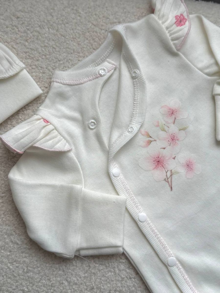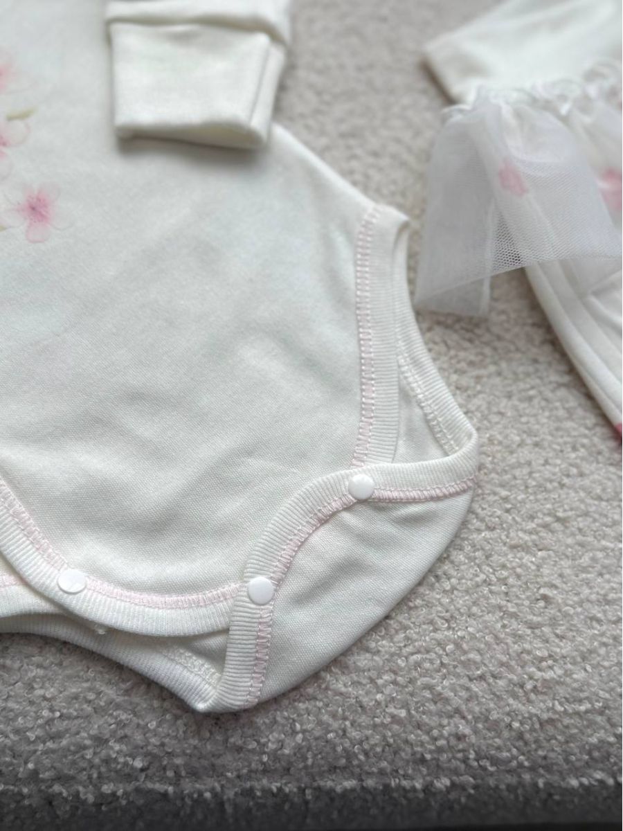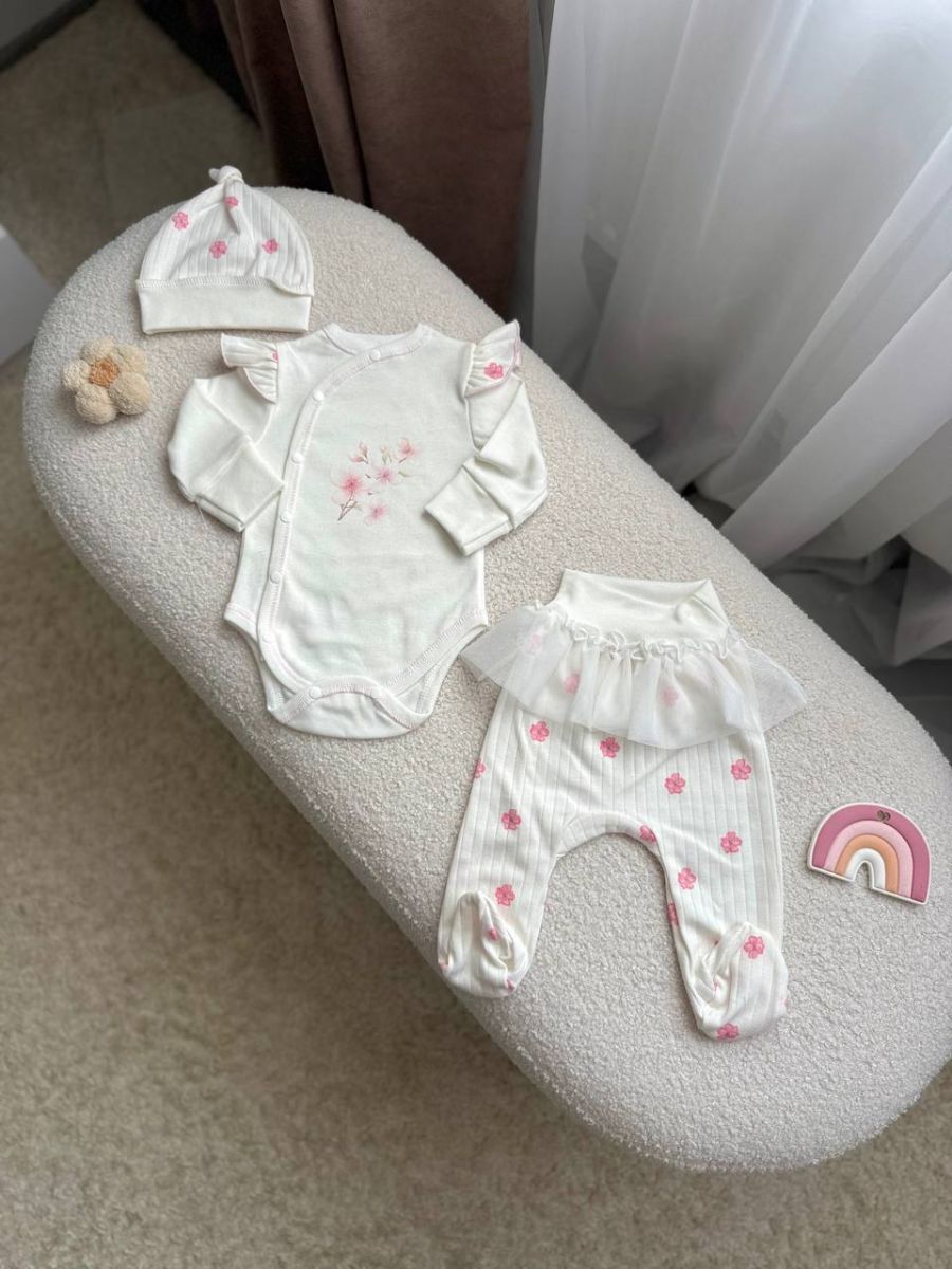 Комплект 3ка з боді та спідницею, інтерлок "Smile". Принт - Квітки сакури. Розмір - 62