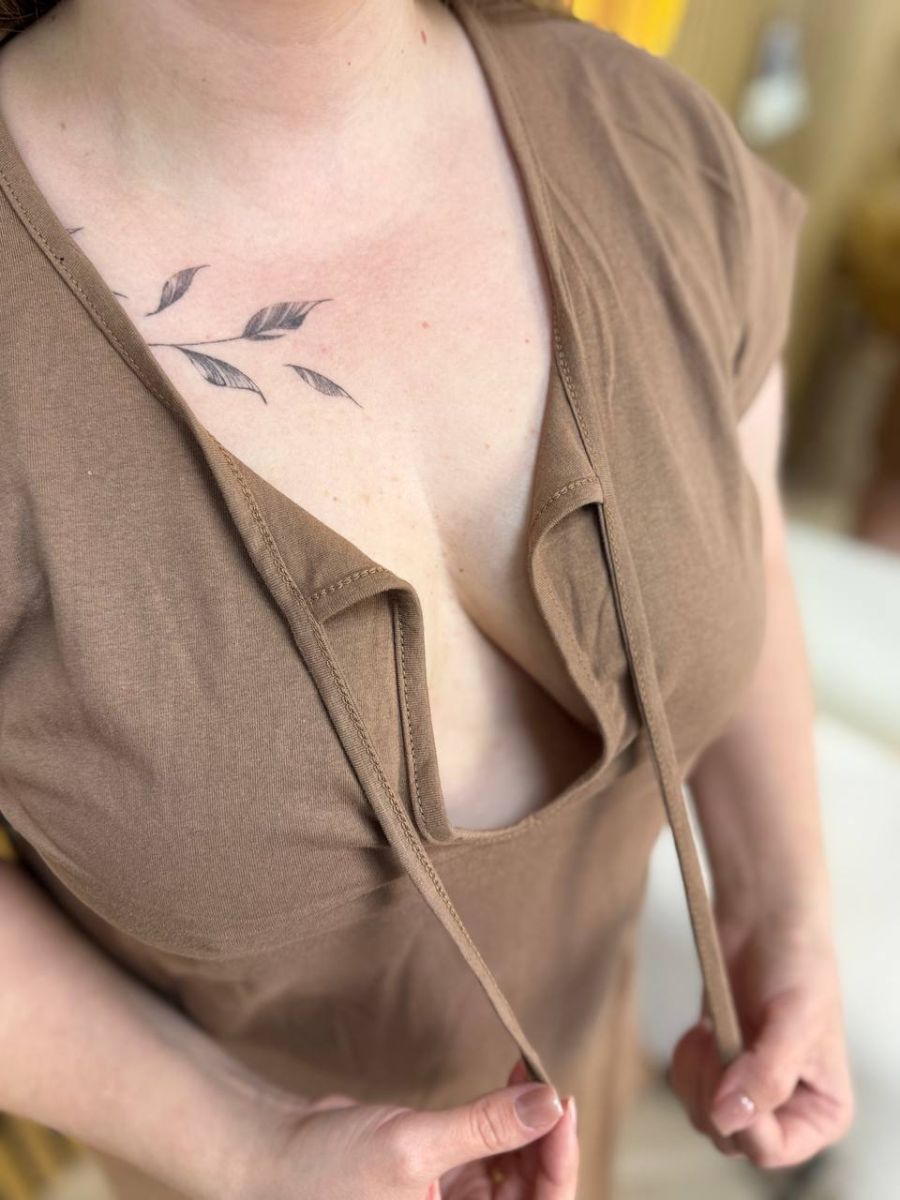 М’яка, дихаюча тканина, вільний крій і практичні зав’язки на грудях забезпечують легкий доступ для годування — ідеальний варіант як для майбутніх мам, так і для тих, хто вже тримає свою крихітку на руках.