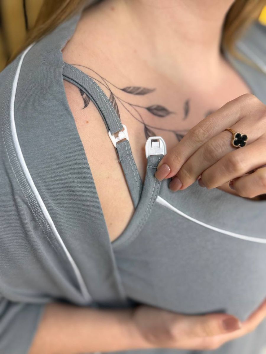 Сорочка виготовлена з м’якої, дихаючої бавовняної тканини, яка приємна до тіла та дарує комфорт у будь-який час доби. Вільний крій не сковує рухів і підходить як під час вагітності, так і після пологів. Продуманий верх забезпечує швидкий та зручний доступ для грудного вигодовування, зберігаючи охайний вигляд.