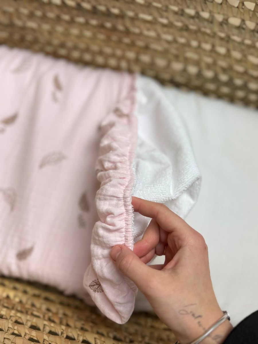 - Матеріал: Верхній шар – 100% натуральний муслін, м’який та ніжний до дитячої шкіри. Нижній шар – водонепроникна мембрана, яка запобігає протіканню.