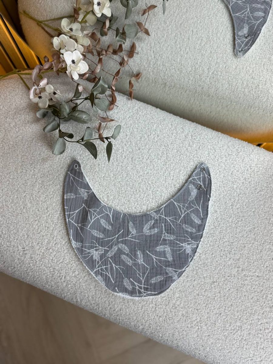 Слюнявчик, нагрудник мусліновий, непромакаючий. Принт - Листочки контур на сірому