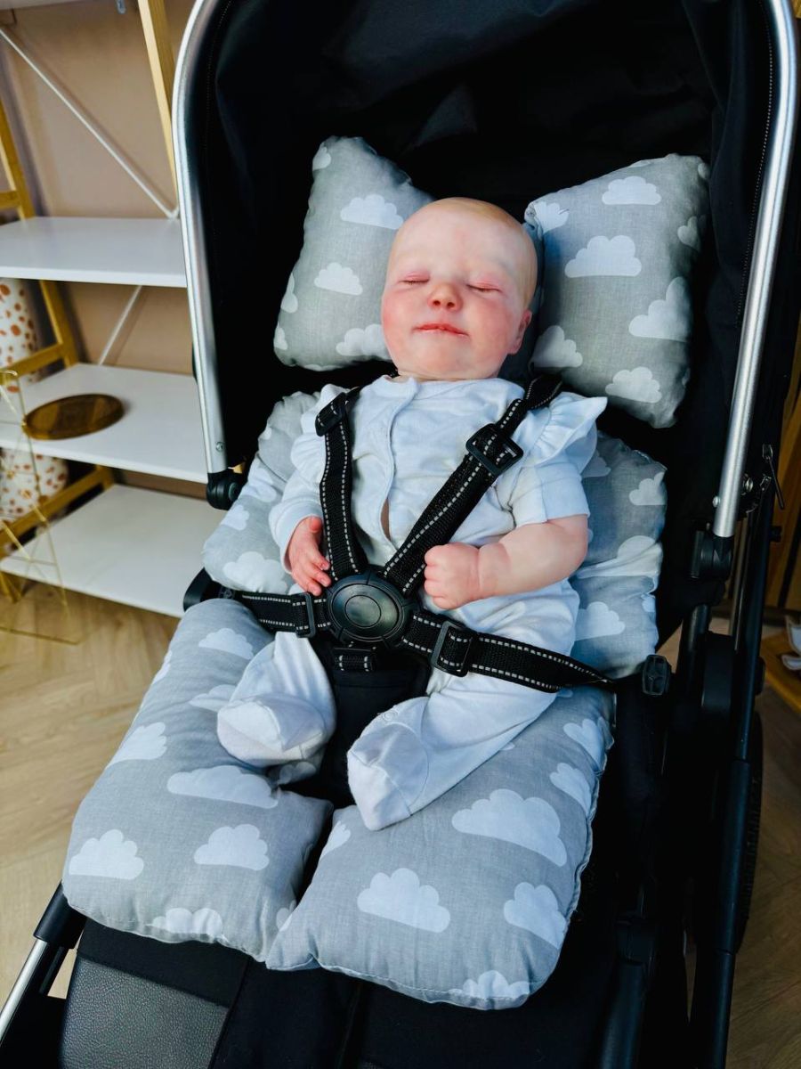• Практичне кріплення: Гумка на зворотному боці забезпечує надійну фіксацію на колясці, а вирізи під 5-точкові ремені безпеки гарантують сумісність із різними моделями крісел.
