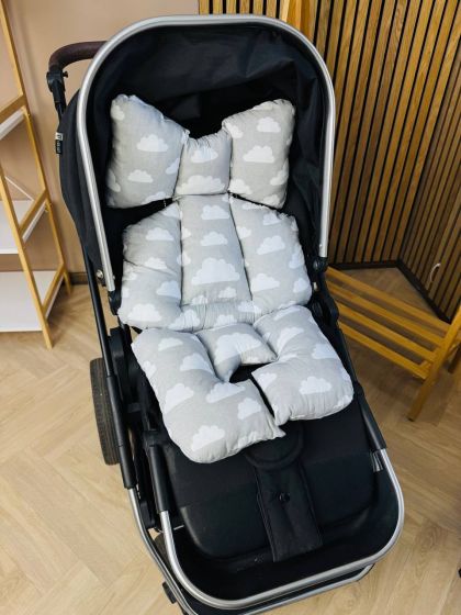 Матрасик візочок прогулянковий 3в1. Принт - Біла хмаринка на сірому