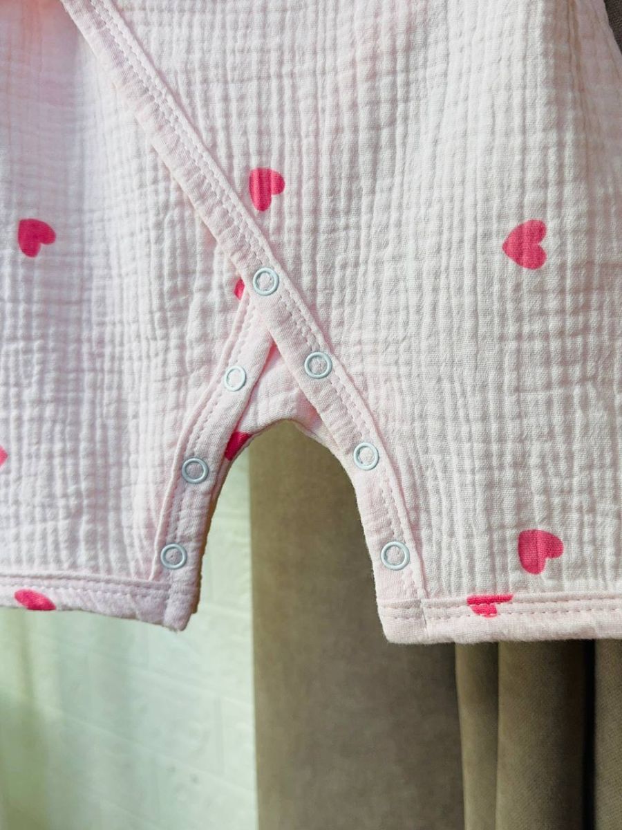 Комфортний та практичний пісочник-кімоно для малюків, виготовлений із чотиришарового натурального мусліну-жатки. Тканина має м’яку, повітряну текстуру, добре пропускає повітря та ідеально підходить для чутливої дитячої шкіри.