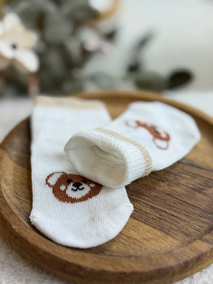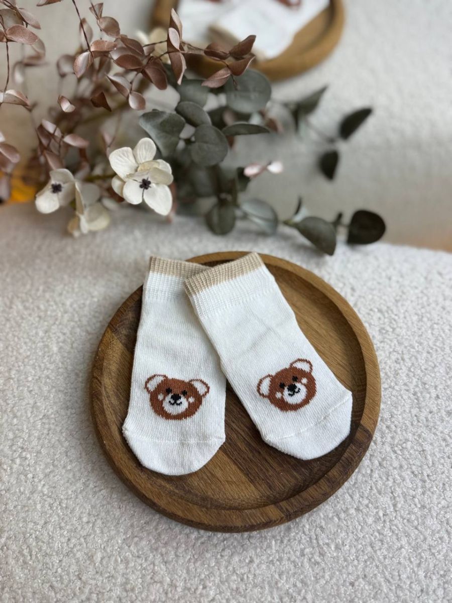 Еластична резинка м’яко фіксує шкарпетки, не перетискаючи ніжку та не залишаючи слідів. Акуратний дизайн із милим принтом додає виробу ніжності та робить його стильним доповненням до будь-якого образу малюка.