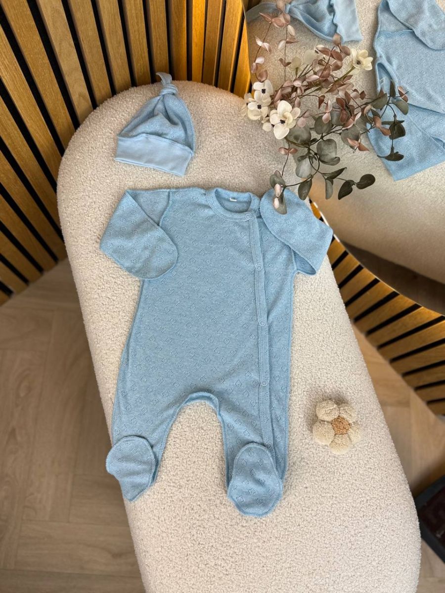 Зручний та практичний варіант для перших днів життя малюка. Виконаний із натуральної бавовни з ніжною перфорацією, яка забезпечує хорошу вентиляцію та комфорт для чутливої шкіри.